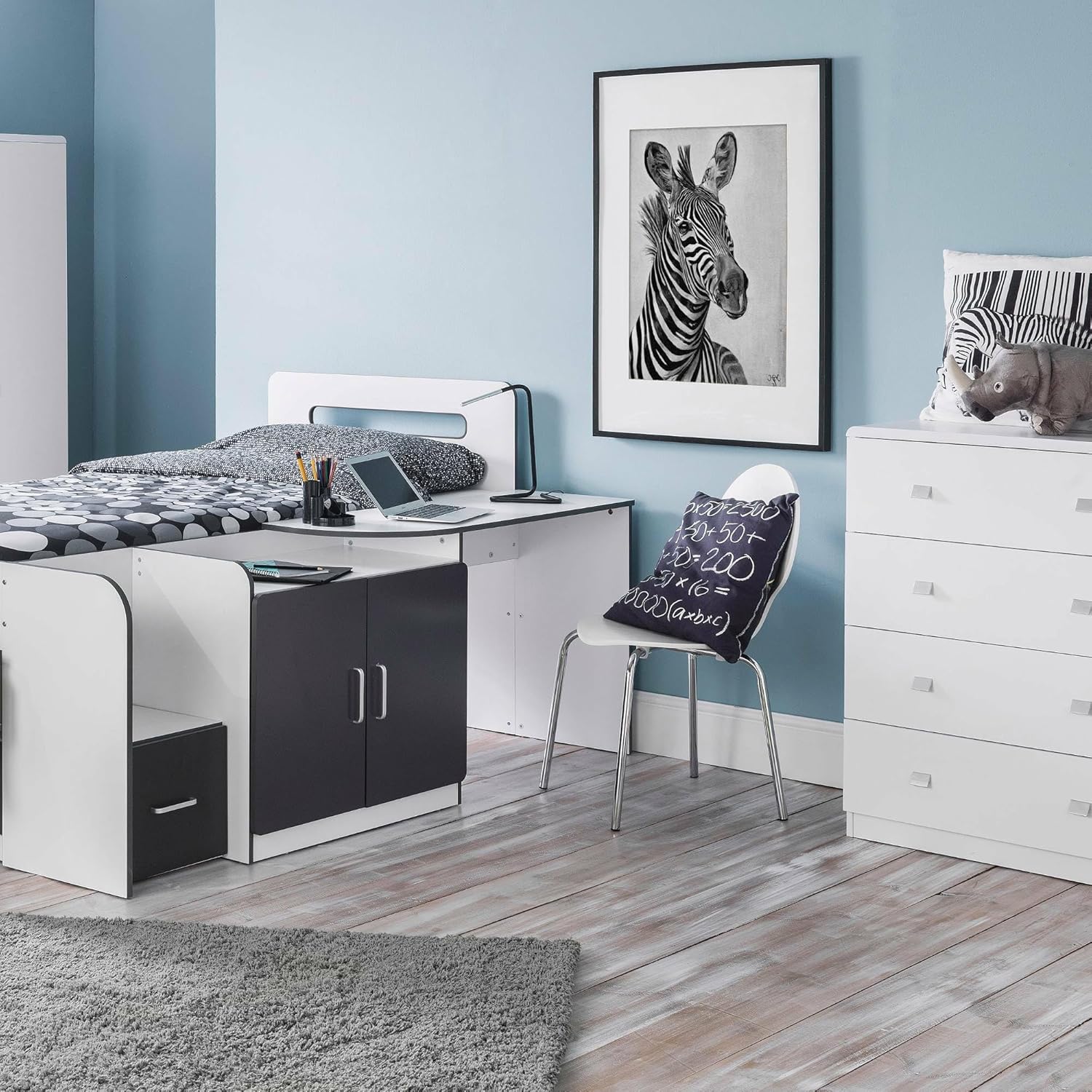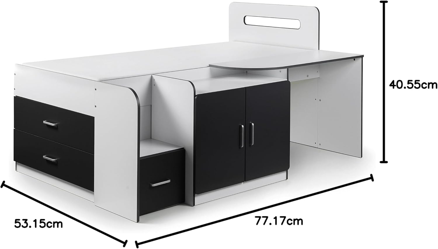 Contains 3 drawers and a cupboard
