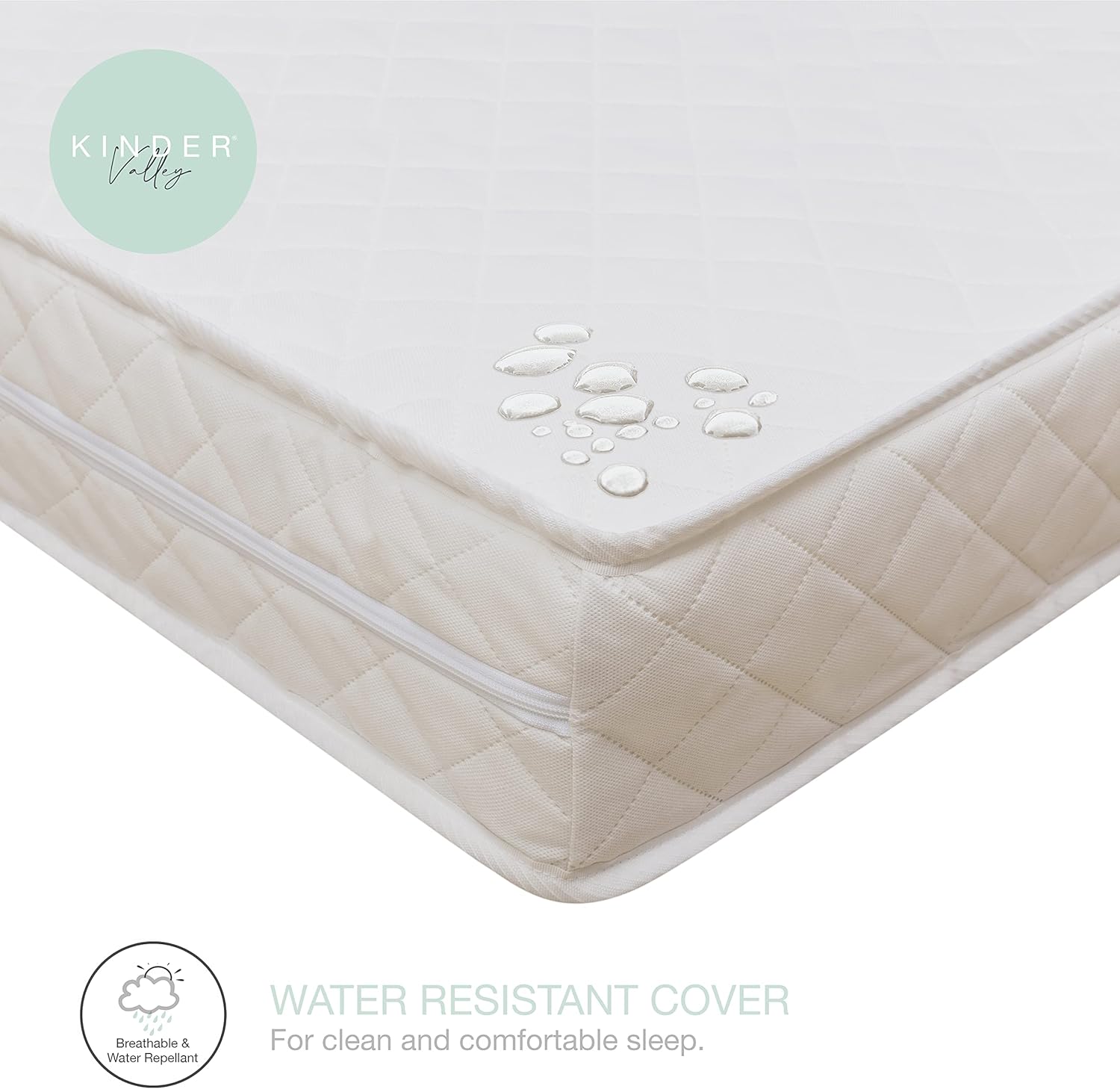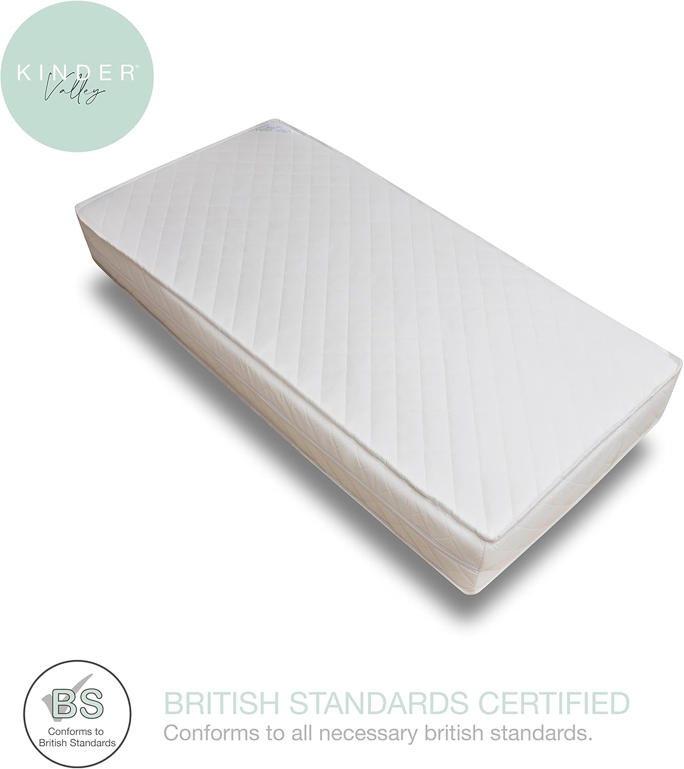 Kinder Valley 7 Piece Grey Toddler Bed Bundle, With Pocket Sprung Mattress & Safari Friends Reversible Bedding, Solid Pine Wood Base | (Junior & Children’s Bed)
