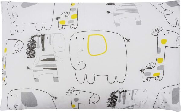 This toddler bed bundle comprises of all that you need to provide your toddler with a dreamy night’s sleep. This safari friend’s toddler bed bundle includes a solid pine wood bed, a comfortable and breathable fibre children’s mattress, a soft and cosy pillow and duvet as well as a full printed bedding set including fitted bed sheet, pillowcase and duvet cover which are made from our soft easy care Polycotton. Our kid’s beds can be wiped clean, the pocket sprung mattress has a removable, washable cover and our bedding set is machine washable. The toddler floor bed is ideal for the transition from a cot to a big bed and it has side rails to prevent falls. The frame is made from durable pinewood and is incredibly easy to assemble with all instructions and tools included. The single bed has sturdy wooden slats that form a solid base, which is low to the ground for easy access, and a painted finish in timeless grey that will look great in any bedroom or nursery. This toddler bed bundle comes with our Pocket Sprung Mattress. Made in the UK, the children’s mattress contains a bonnell spring unit, each spring is wrapped in an individual pocket to improve stability, and encased in a breathable polyester fibre, which provides posture support & comfort. It is surrounded by a fully quilted cover for extra comfort and can be removed for washing in case of any accidents. With a colourful and safari friend’s animal theme, the bedding has been specially designed with your little one in mind and is suited to boys and girls. The toddler bedding set, including duvet and pillow covers, have a reversible printed design so there’s little chance your little one won’t look forward to bed time. This junior bed bundle is the ideal bed for kids.