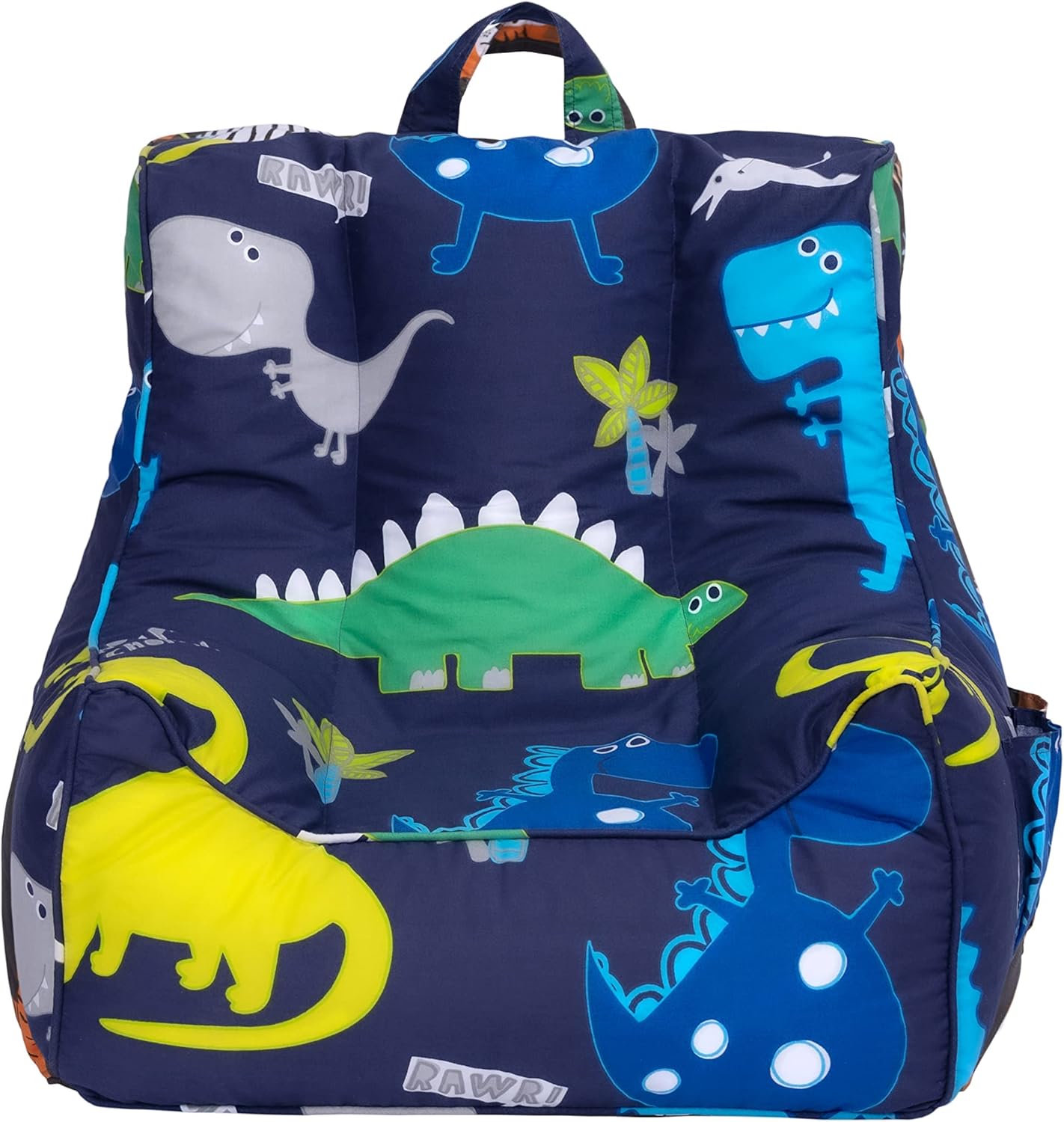 Ready Steady Bed Kids Bean Bag Chair With Footstool | Child Play Safe Soft Seat Playroom Sofa | Ergonomically Designed Toddler Armchair | Comfy Children Furniture (Dino Dark)