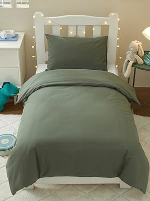 Ruccit Toddler Bedding Cot Bed Duvet Cover Set Boys Girls 100% Washed Cotton Sage Green Kids Quilt Duvet Cover Junior Bedding Set 2pcs- Cot Duvet Cover & Pillowcase Set,Soft,Breathable,120x150cm
