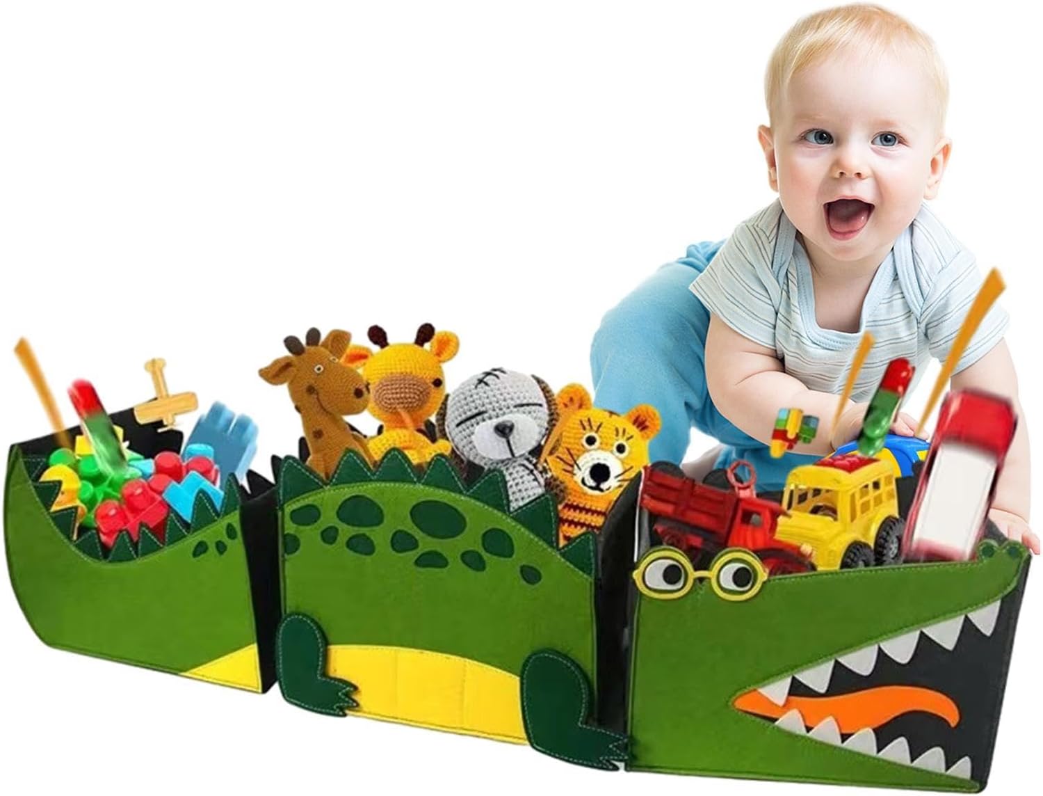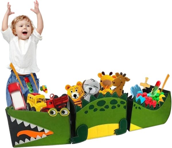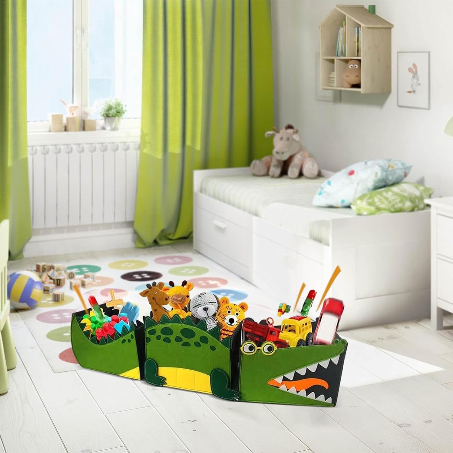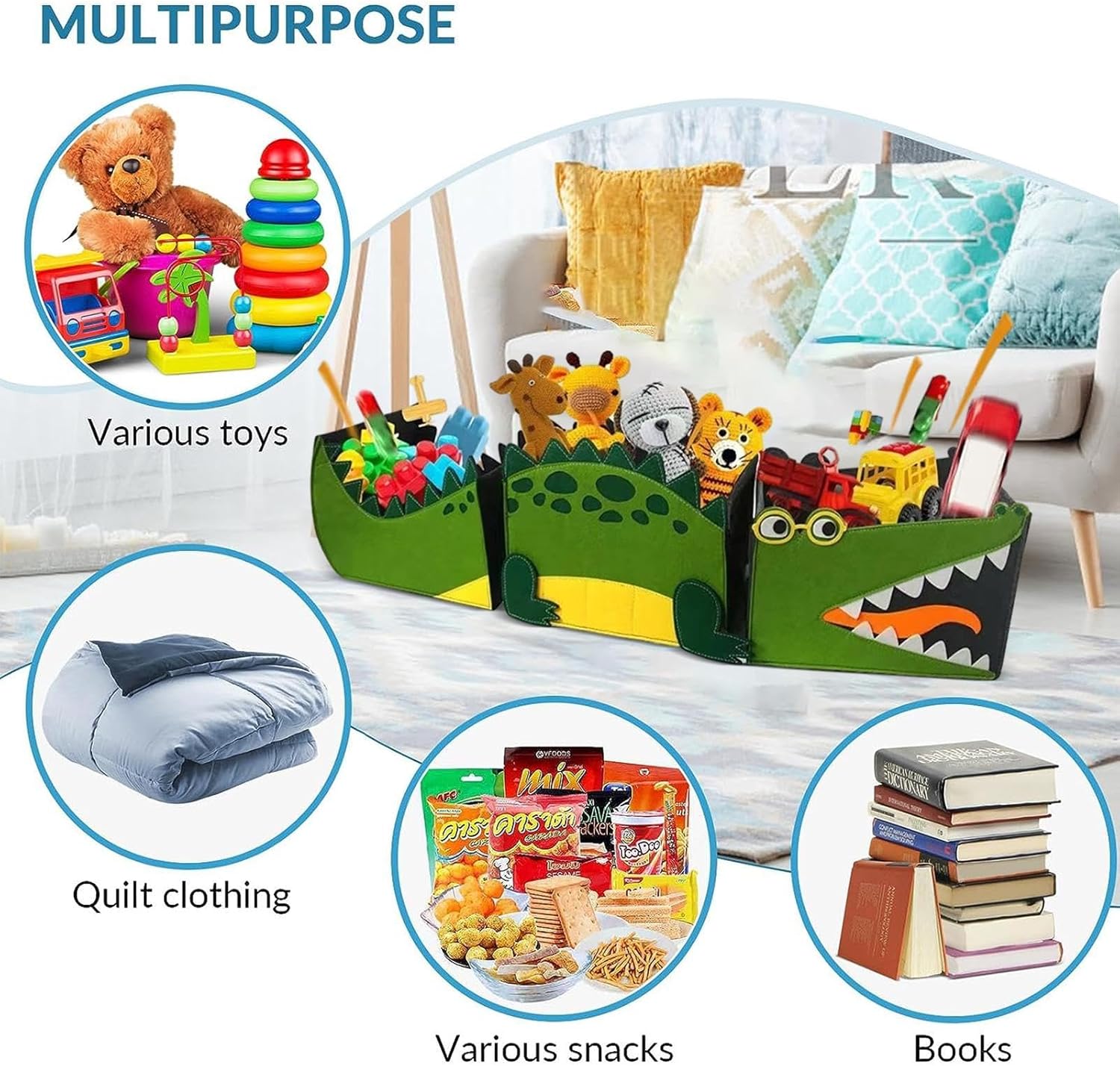 ♒Large Storage Room: Crocodile Pattern Toy Organizer Boxes , storage containers come with spacious compartments divided into 3 detachable parts, maximizing storage while keeping items organized. Measuring 11.4*9.4*7.6in per section, it’s the perfect space-saving solution when not in use.