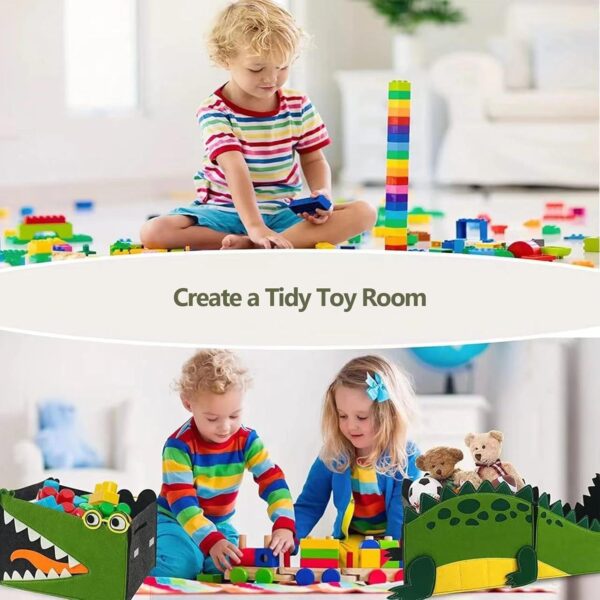 ♒Excellent in Workmanship: The cartoon crocodile design of our storage box is perfect for kids! Large Toy Organizer Bins for Plush Toys Building Block Toys is three detachable parts are connected by a strap, and can classify and store toys of all sizes.