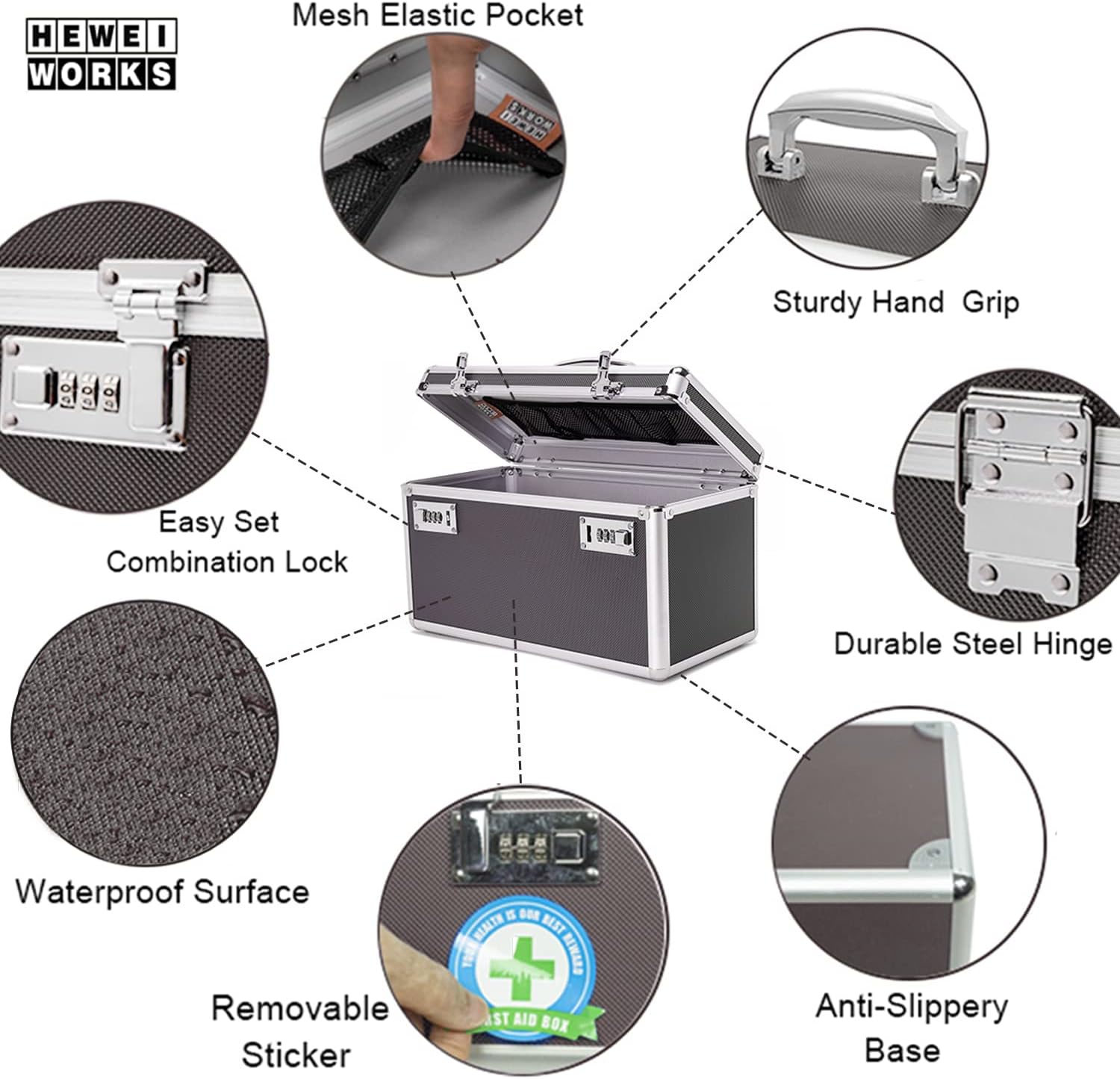 【WIDE MULTIPURPOSE APPLICATION】 You can put the medicine box at home, in office, factory, restaurant, GYM; you can also take it to camping, travelling and various outdoor activities; you may use it to store secure cash, jewelry, ID documents & valuables, you may find it a perfect gift for your family, friends or employees to express your caring and love.