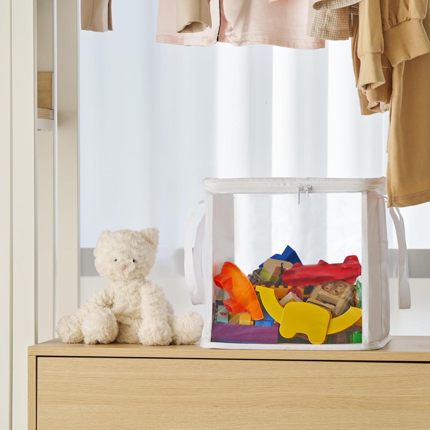 holay 2-Pack 12″ Cube Storage Bins [White] – 27L Capacity PVC Boxes Transparent Lid & Handles – Durable & Foldable – Multi-Purpose Toy, Clothes, Blocks Organizer for Kids, Toddlers, Playroom (Large)