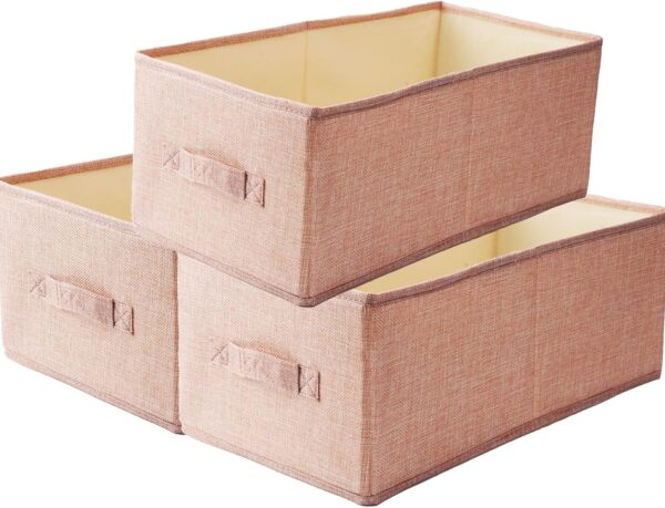 Homo Trends 3 PCS Fabric Storage Boxes Drawer Organisers Wardrobe Organizer Foldable Dividers Box Bins Handles Clothes Closet Shelves Organiser Socks Underwear Ties Scarve Toys Handkerchiefs, Pink