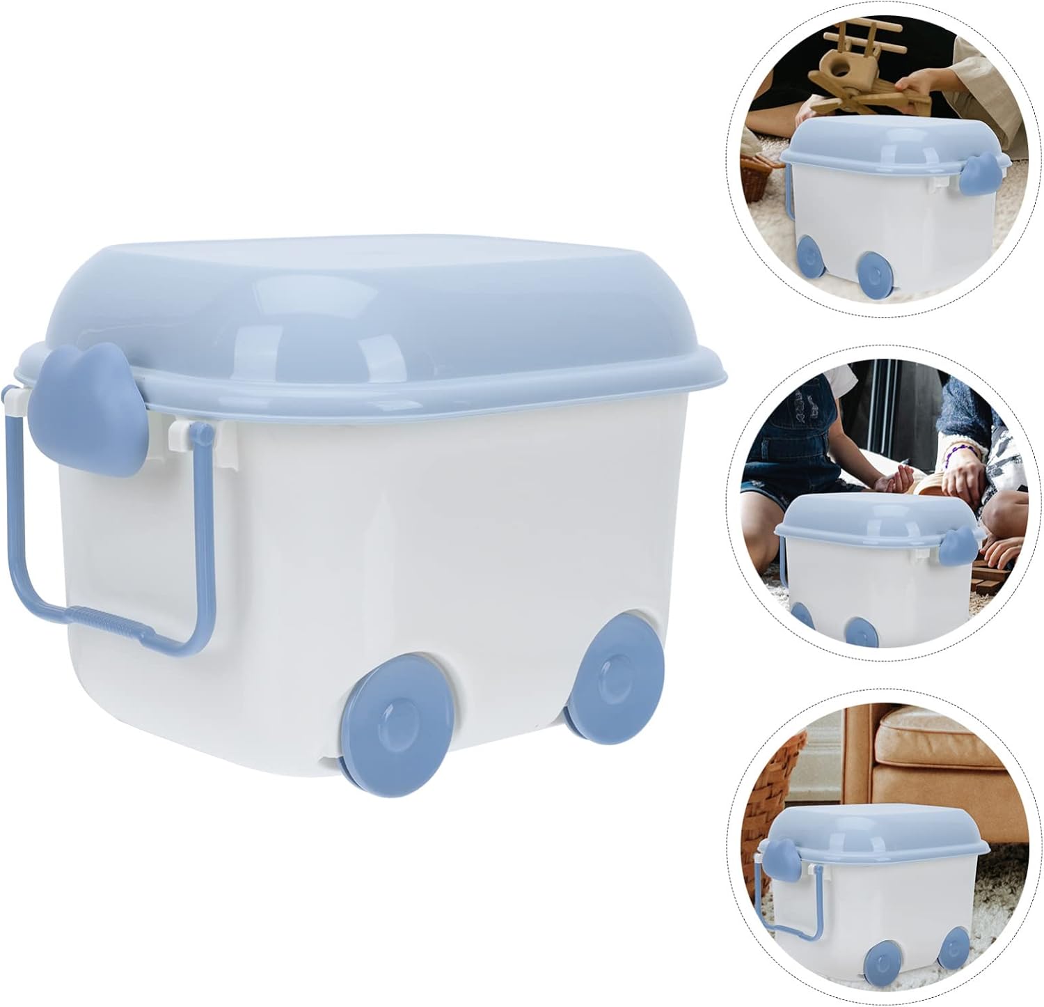 Kids Toy Box with Wheel and Lid Car Latch Box Chest Storage Organizer Supplies Storage Bin Books Container for Boys Girls Children
