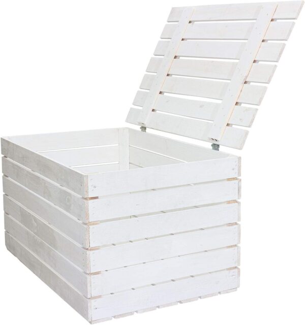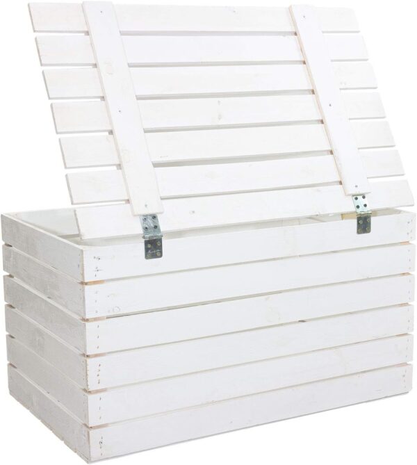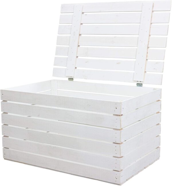 ✔ The large wooden chest has a lid and can therefore be used as a storage box