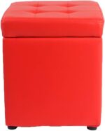Red Faux Leather Storage Foot Stool Pouf Bench Seat Toy Box Organizer Chest 12x12x14inch