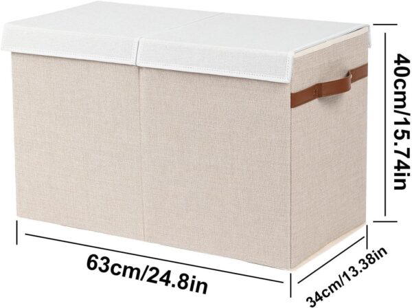 With a removable cover design, lightweight and odorless material, and two side handles for added convenience, these Toy Storage Boxes are perfect for stowing away your clothes and fabrics without taking up any valuable space in your home. And with their large capacity, you can store everything from seasonal items to everyday items with ease. Specification: Product Name: Toy Storage Box Product Material: Imitation linen+cardboard Product Colors: Beige/Grey Product Size: about 63x34x40cm/24.8×13.39×15.75 inches Product List: 1* Toy Storage Box Notes: Due to the lighting effects and filming angles, there is a color difference in the product, please understand. Due to manual measurement, there is a tolerance in the product size. The actual product shall prevail, thank you!
