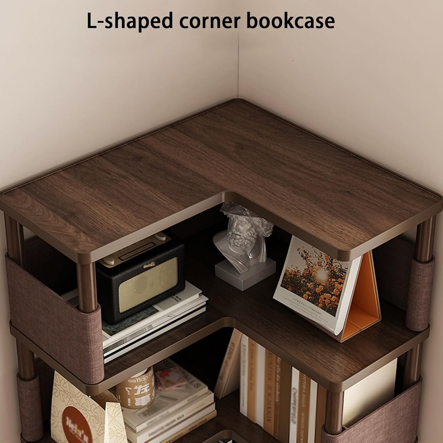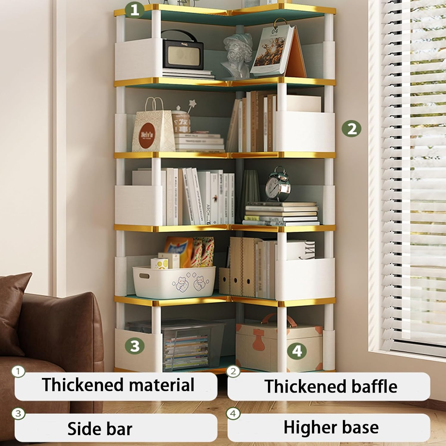 Tall L-Shape Corner Shelf Bookshelf with Baffles – Toy Organizer Chest for Living Room Home Office Storage Display Rack
