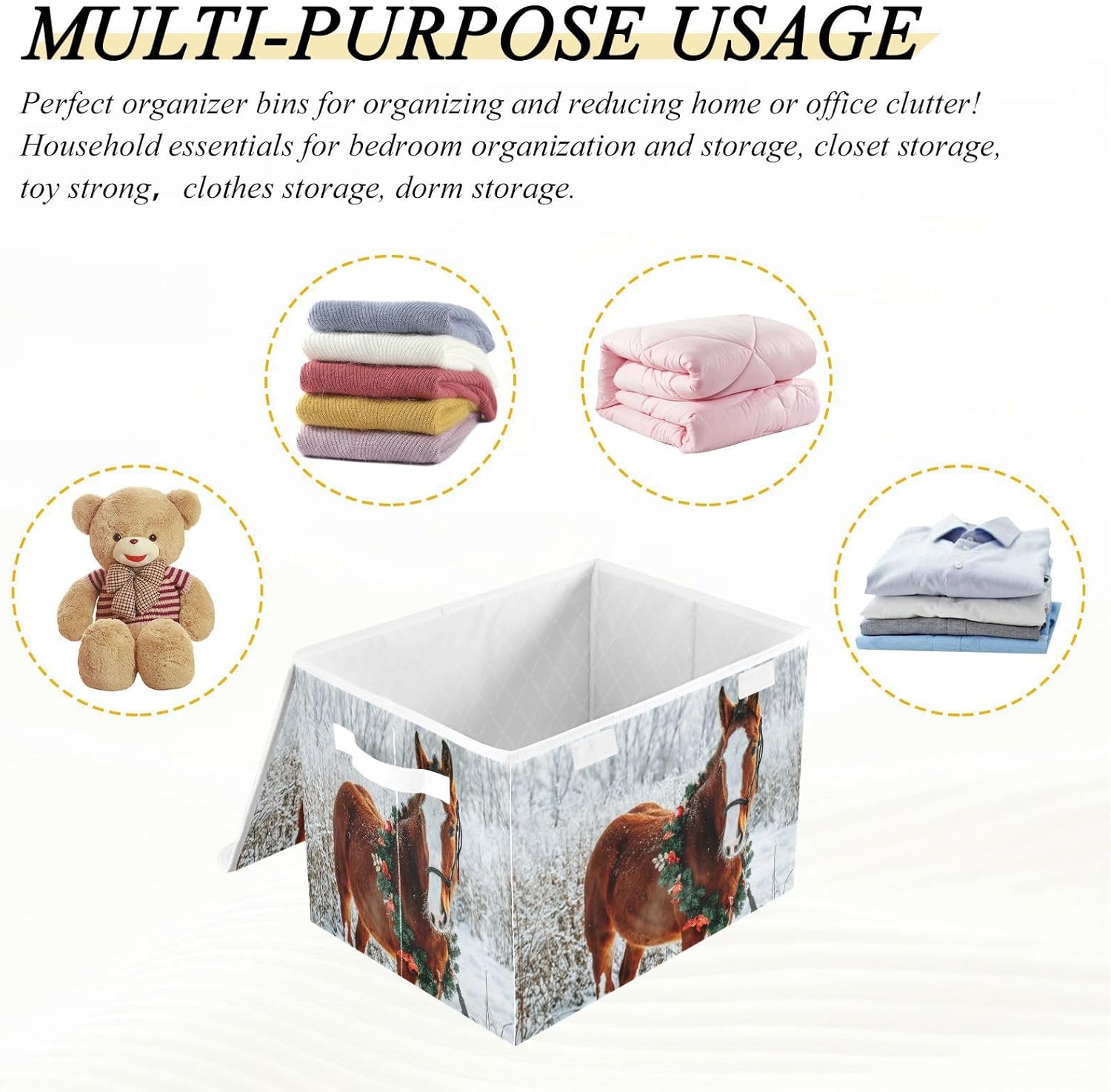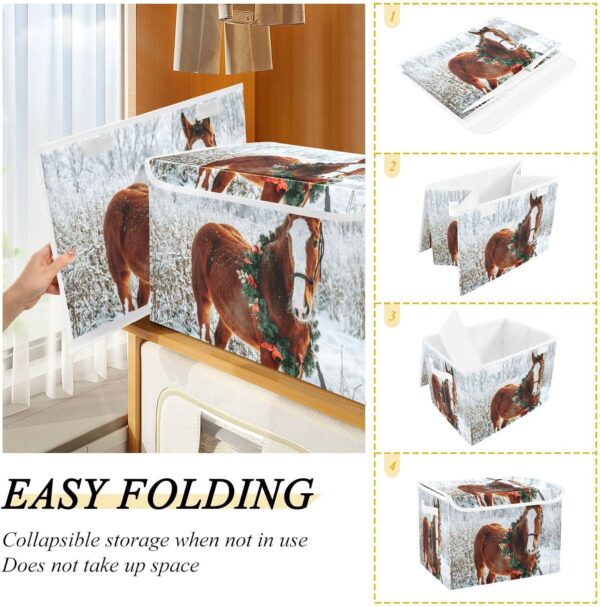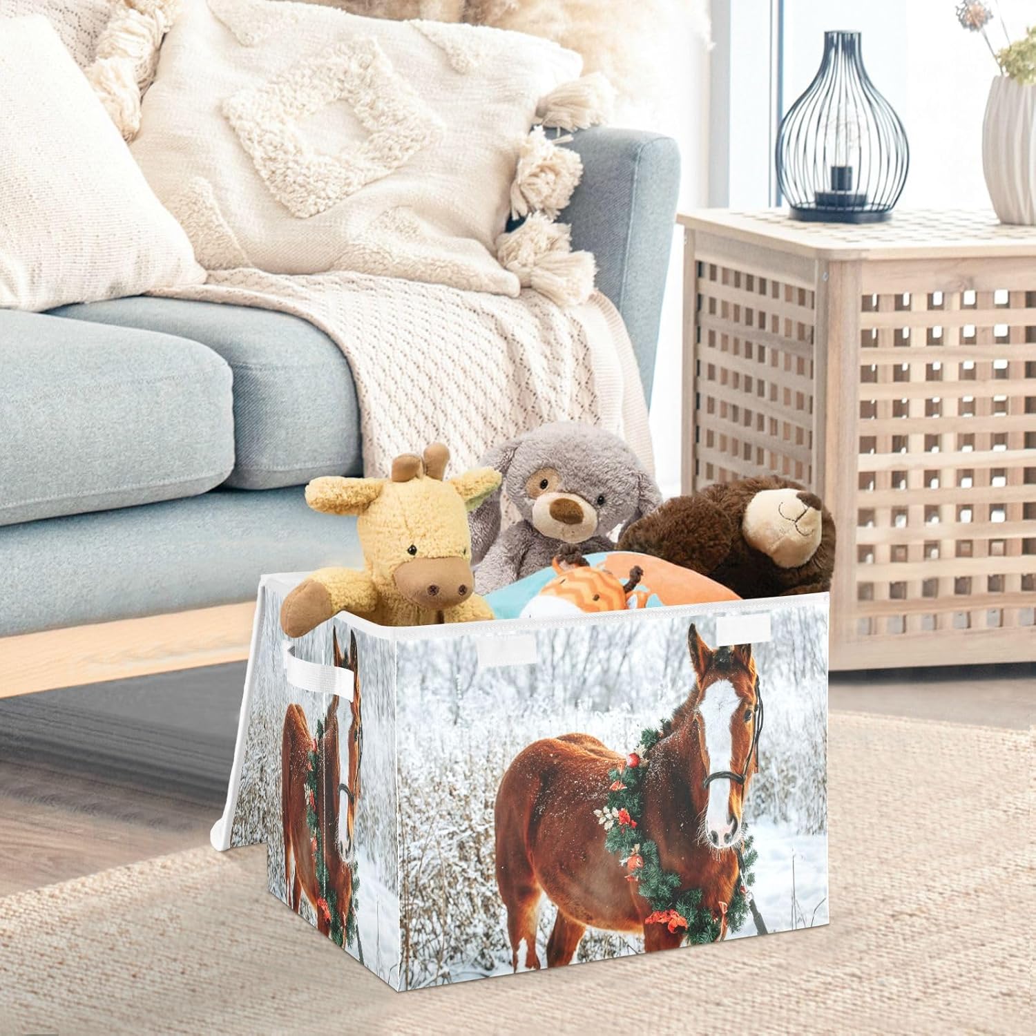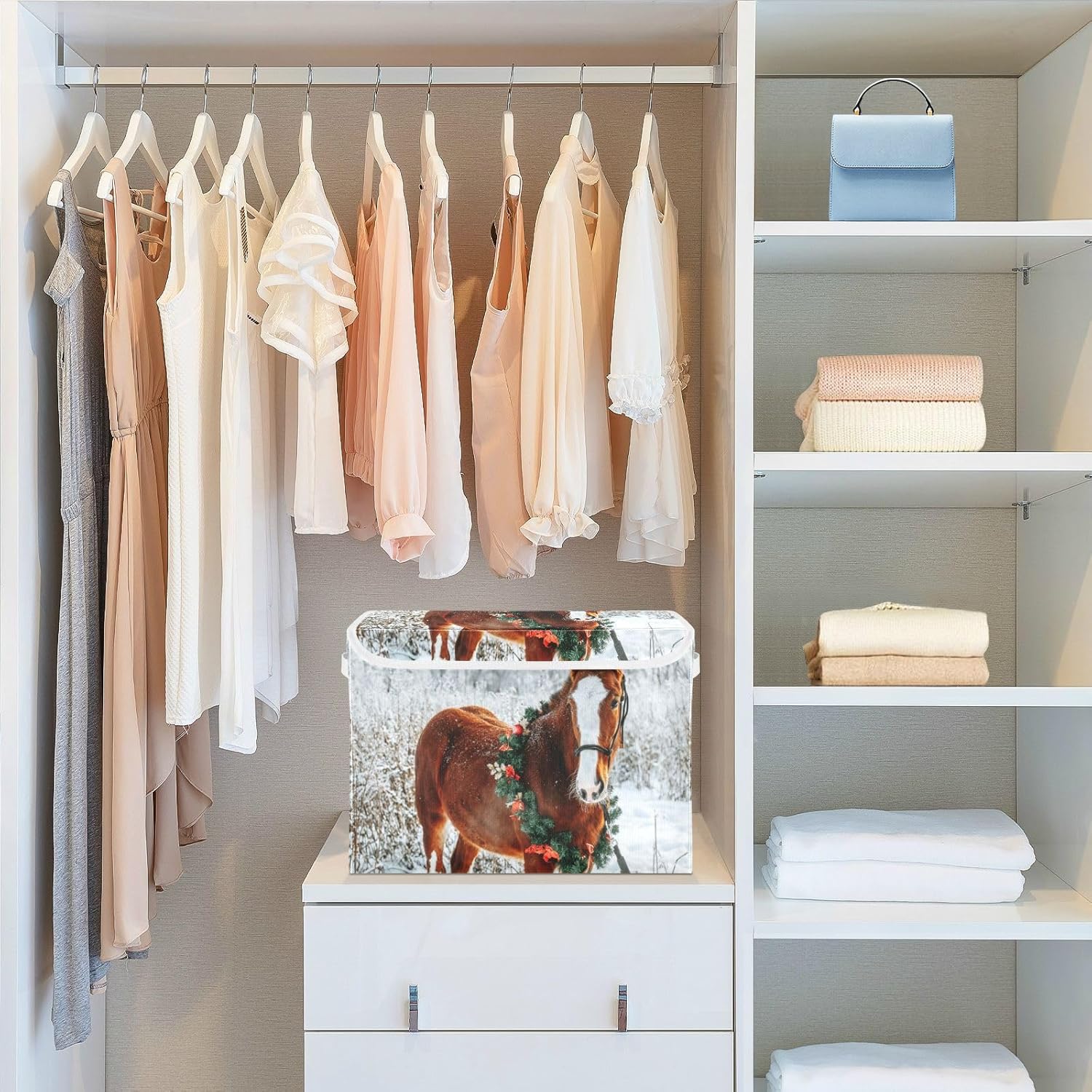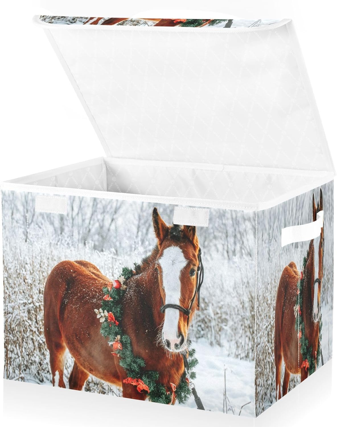 xigua Red Horse in Christmas Collapsible Storage Bin with Lid 1Pack,Storage Box,Organizer, Container for Home Office Shelf Closet Toys Clothes Sundries, Reusable352