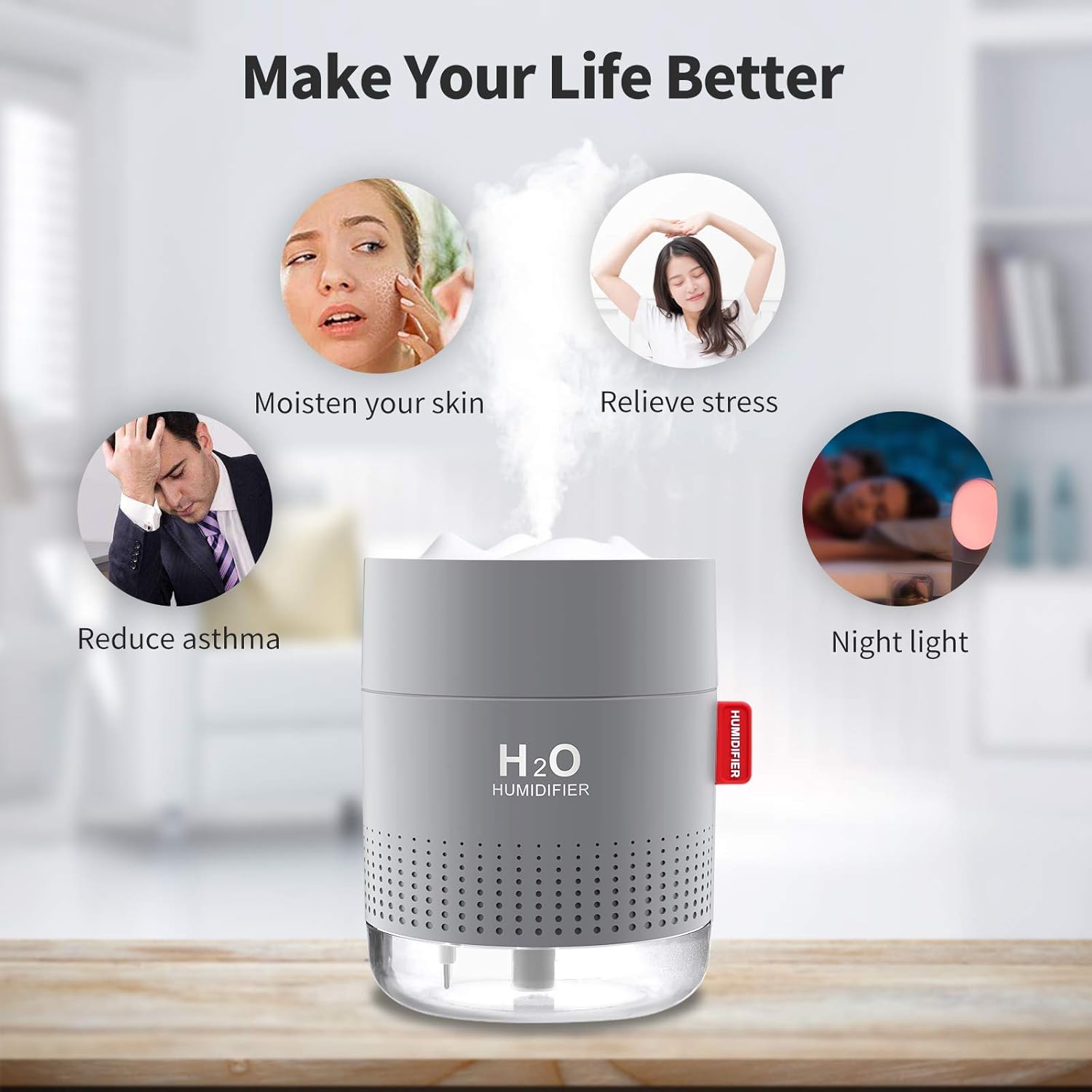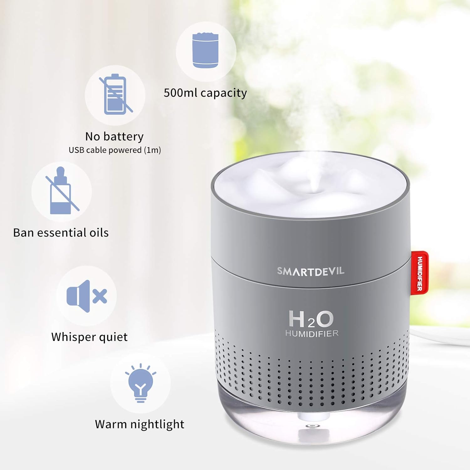 SmartDevil Humidifiers 500ml Cool Mist Humidifier Air Humidifier Whisper Quiet USB Humidifier with Night Light, Waterless Auto Shut-Off, for Home Baby Bedroom, Yoga, Office, Travel