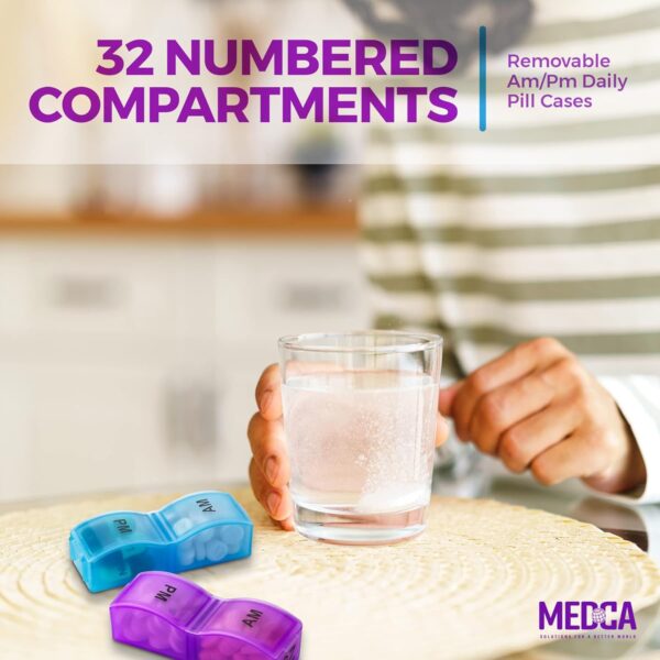 Monthly Pill Organizer – 32 Compartments Am/Pm Daily Pill Organizer 2 Times a Day, Pill Dispenser and Organiser Caddy by MEDca