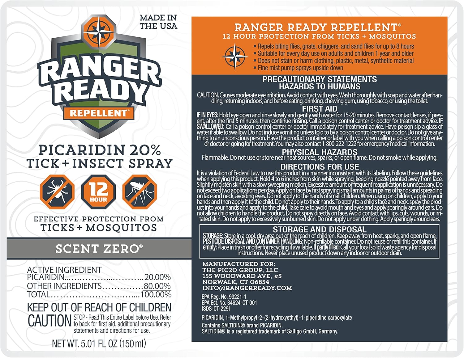 Ranger Ready Picaridin Insect Repellent Spray with Scent Zero – Mosquito Repellent and Tick Spray (5 oz, Pack of 1)