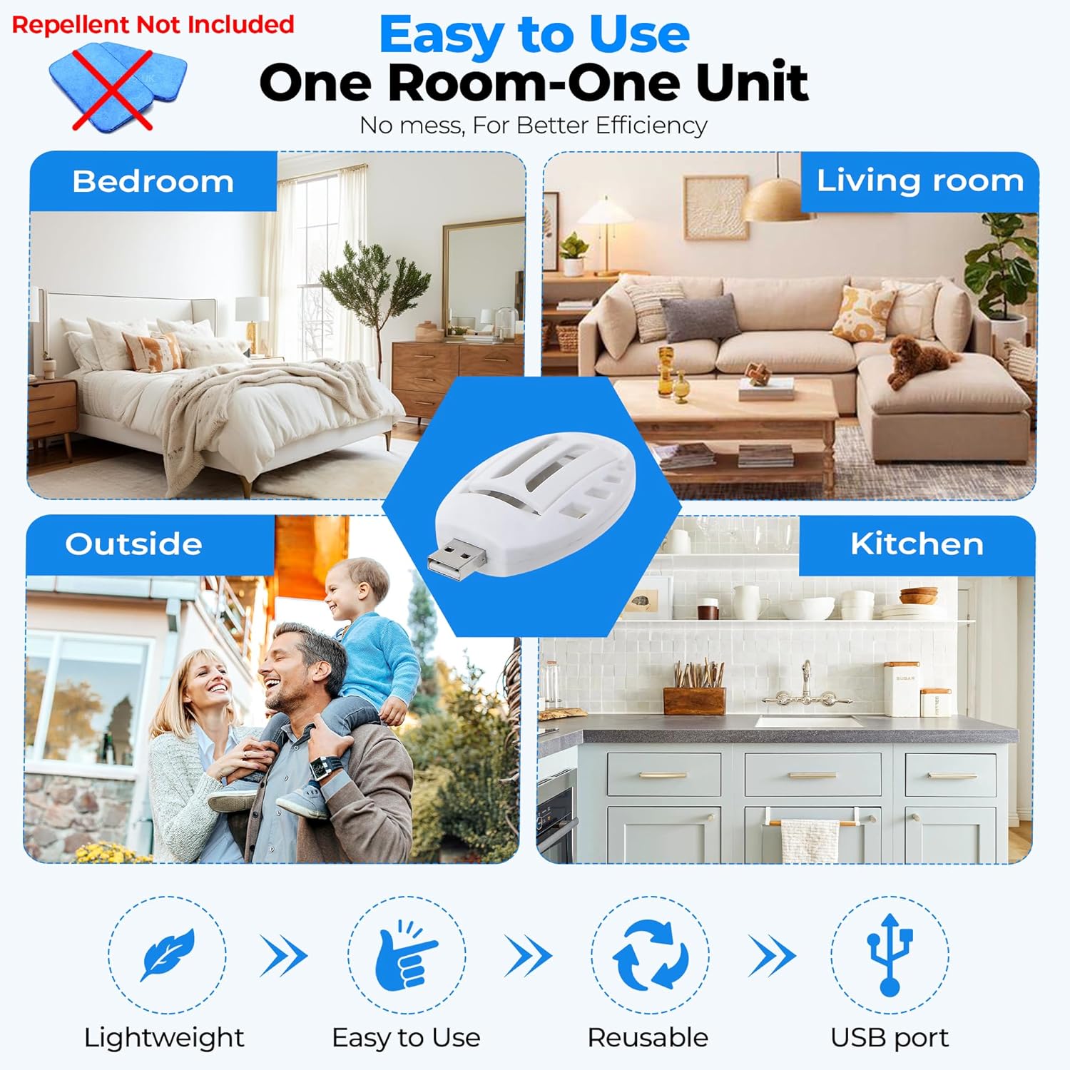 Mosquito Repellent USB: Our mosquito repellent creates a 20-foot mosquito protection zone. Repel mosquitoes without spraying on your skin. Say goodbye to lotions and try our USB mosquito repellent. When you are playing games or doing office work, just plug in the USB into your computer or put it on the table, and do your work confidently.