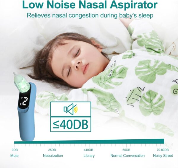 Affinity Design : Electric Baby Nose Sucker the motor is so quiet that you can barely hear it, Don’t worry that the sound when using it will scare your baby, making them suitable for use while your baby sleeps. Light and music-soothing functions on the Nasal Aspirator help distract babies, and prevent them fussy or crying, It makes the cleaning process easier and quicker