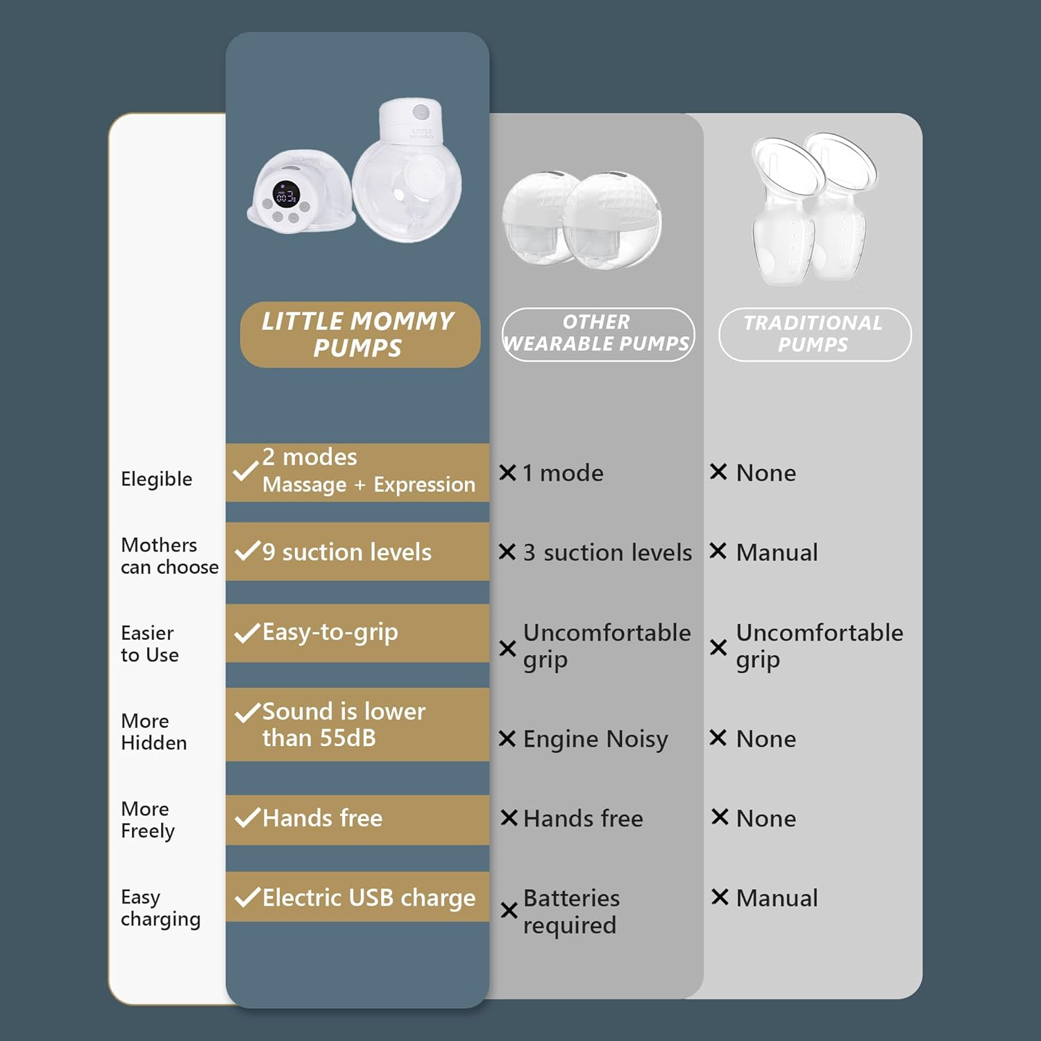 Little Mommy breast pump provides hospital-grade suction and use the same Hub, also correctly selecting and fitting your pump is the key to getting the right level of suction. Little Mommy provides the perfect fit and has comfortable suction. It mimics baby’s sucking rhythm.