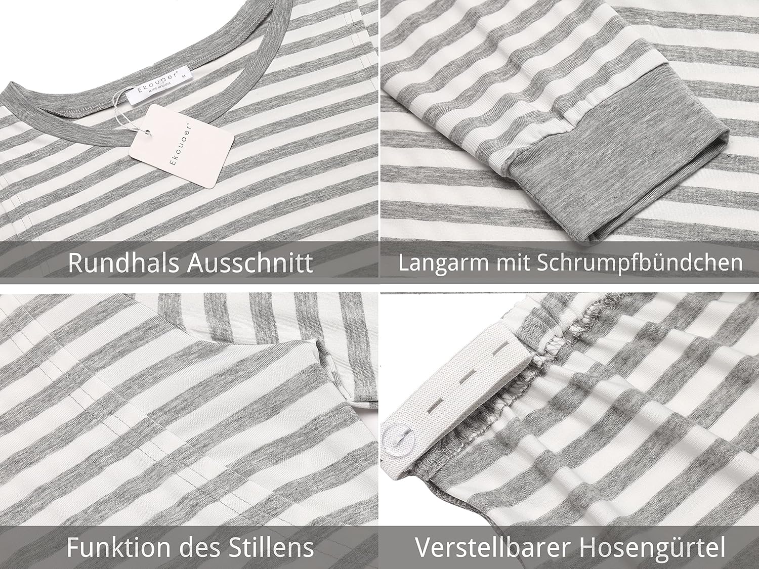 Ekouaer Maternity & Nursing Pajamas Set Striped Knit Long Johns Set Top & Bottom Base Layer for Pregnant Women, S-XXL
