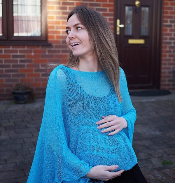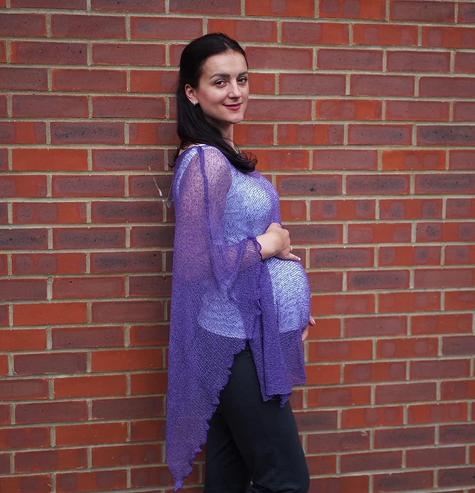 Delicate soft crochet lace knit maternity easy wear poncho designed with your growing bump in mind. Great fit for every body shape during and after pregnancy comfortable enough for layering on balmy summer evenings and cool spring days. This lightweight versatile pregnancy poncho comes in bold and beautiful colours and is a perfect complement for a dress, or looks great over trousers. Check out our fab maternity dresses and trousers! Great to wear on the beach as a swimsuit cover up to protect your tummy from excess sun exposure. This is a delicate garment and should be handled with care. Just like tights or stockings this product may ladder if caught on something sharp. Returns or exchanges for this reason may not be entertained specially if the original packaging has been removed. Fits sizes UK 8-18 70% Acrylic 30% Polyamide. Hand Wash Separately with Care. Dry Flat