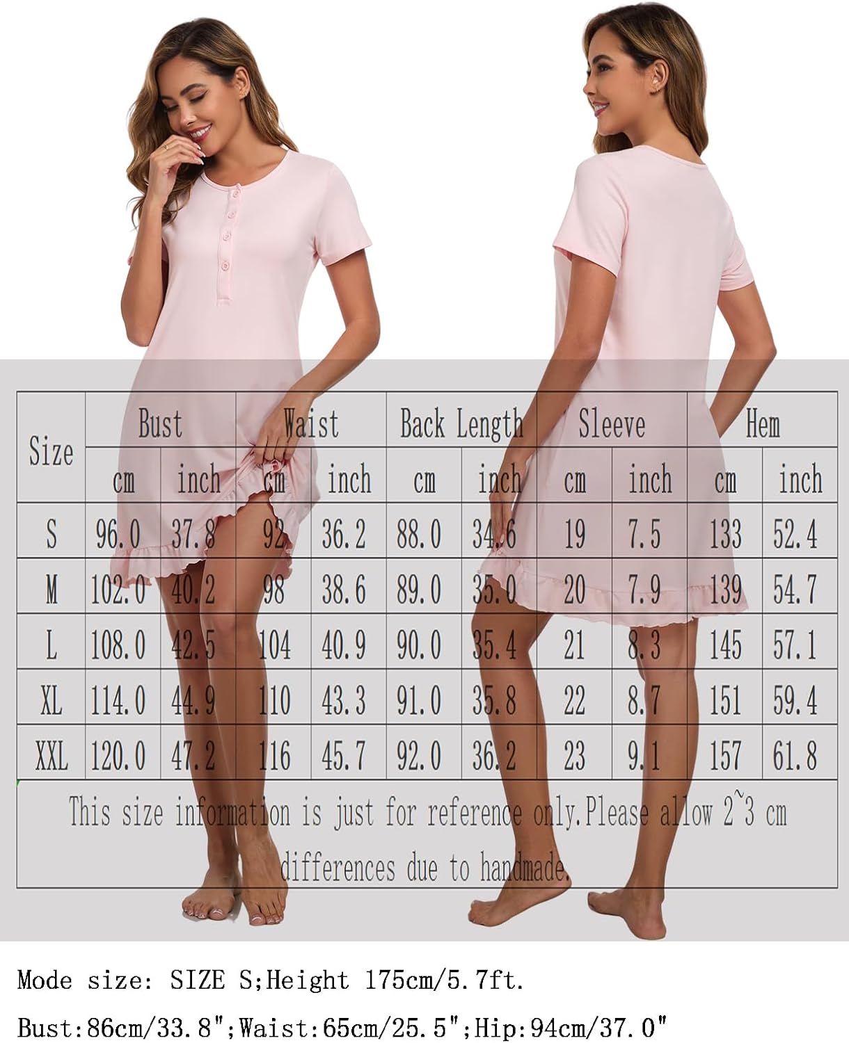 Beuwltpa Women’s Nighties Button Up Maternity Nightdress Nightshirts Short Sleeve Ladies Nightwear Ruffle Hem Soft Nursing Nightgown