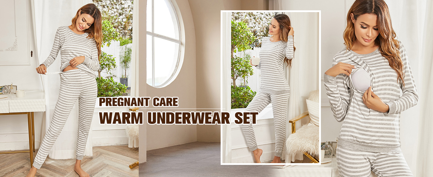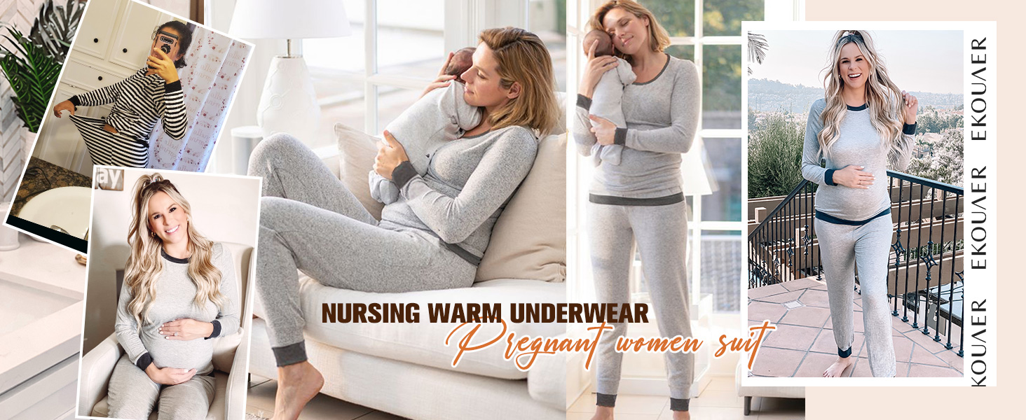 Ekouaer brand has been dedicated to the homewear and underwear industry for many years, we designed this maternity thermal underwear set for all stages pregnant women and new mom who just delivered choose to breastfeed baby.