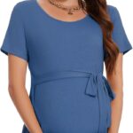 Ekouaer Maternity & Nursing Pajamas Set Striped Knit Long Johns Set Top & Bottom Base Layer for Pregnant Women, S-XXL