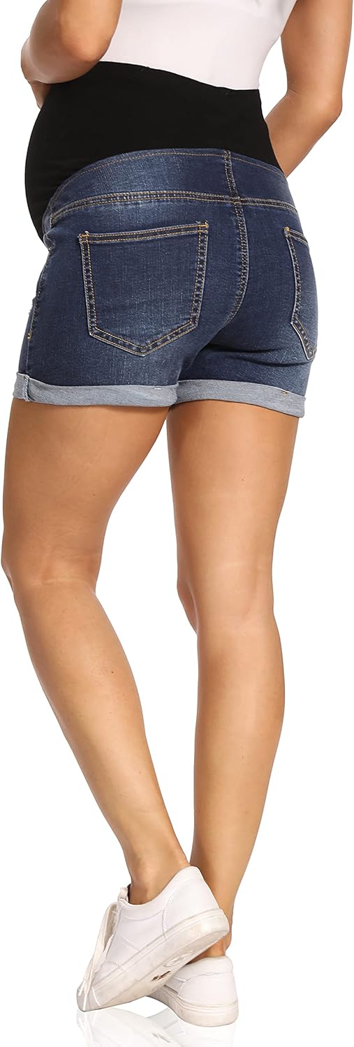 Foucome Maternity Denim Shorts Over Bump Casual Ripped Jean Shorts Trendy Distressed Rolled Hem Pregnancy Shorts