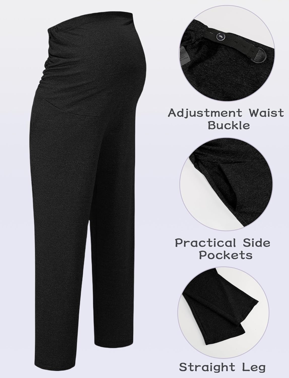 Happy Cherry Maternity Trousers Over Bump Pregnancy Pants Womens Casual Palazzo Lounge Trousers with Pockets Maternity Straight Long Pants S-XXL