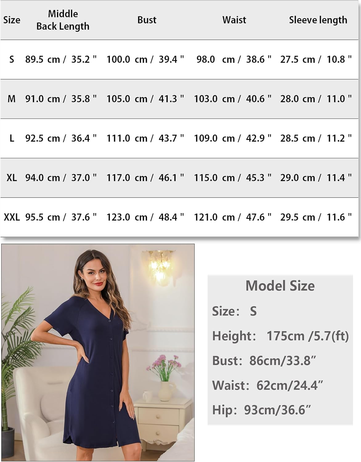Maternity Nightdress Button Nightgown Soft Breastfeeding Labour Nursing
