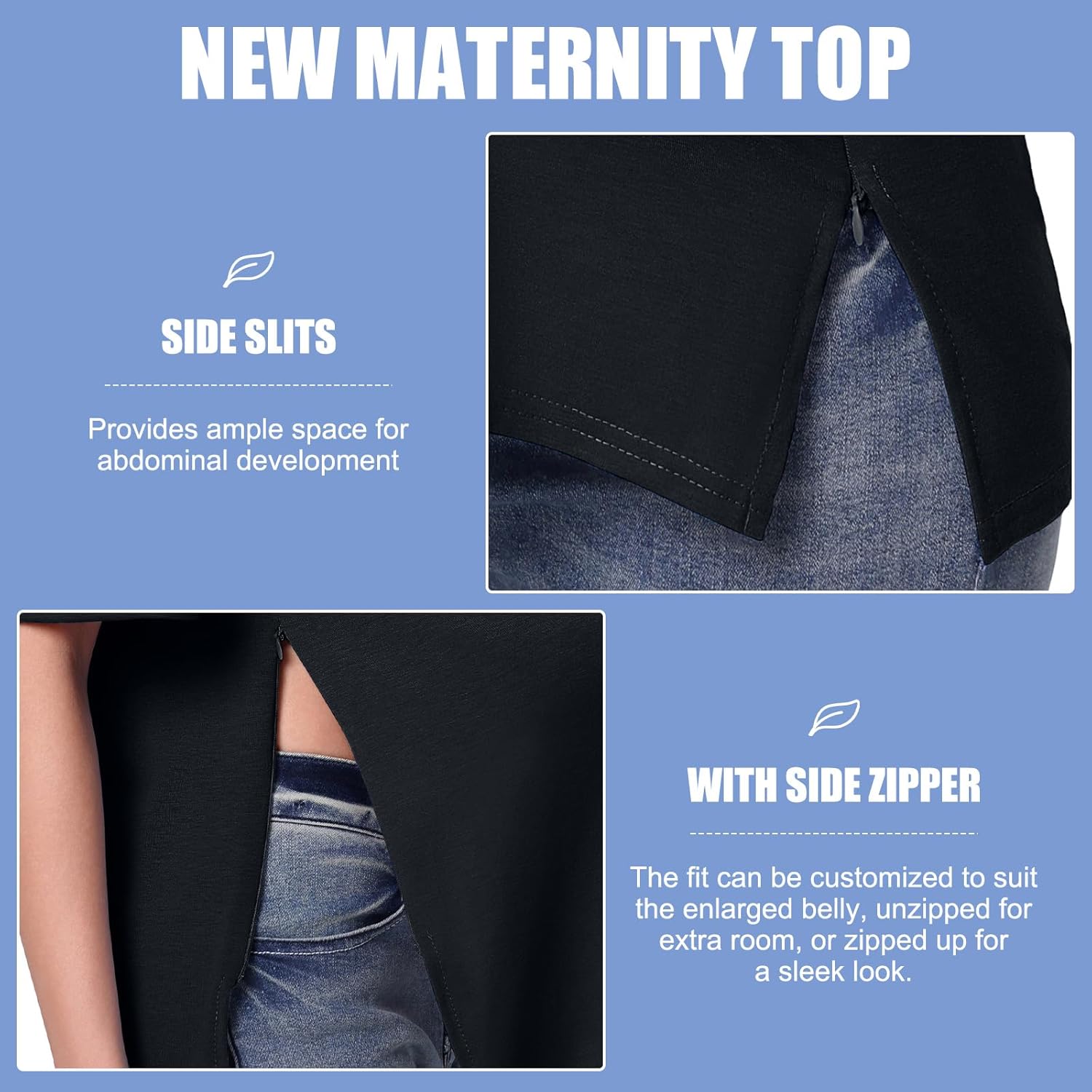 Maternity Tops Tshirt Side Split with Zipper Short Sleeves Maternity Wear Clothes Pregnancy Top for Women