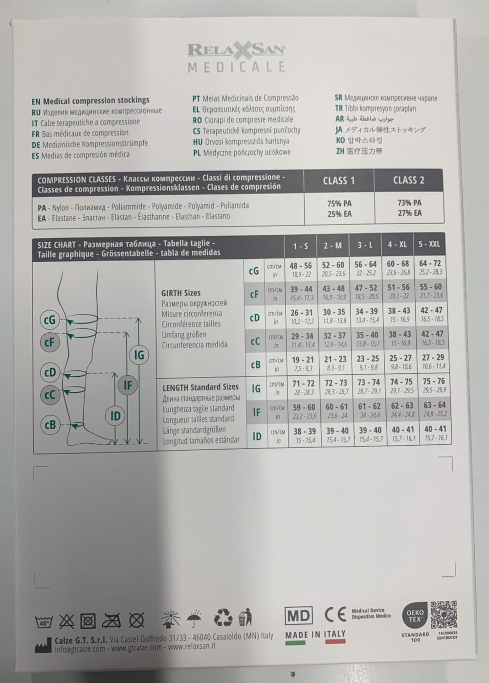 IS ESSENTIAL TO CHOOSE THE RIGHT SIZE of the garments that patients should wear in order for a correct administration of mmHg. The size shall be chosen according to the ankle circumference and not to the clothing size.