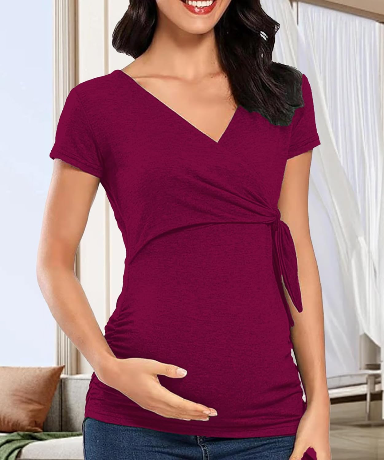 SHEKINI Women’s Breastfeeding Tops Maternity Short Sleeve Tee Shirt V Neck Ruched Pregnancy Nursing Clothes