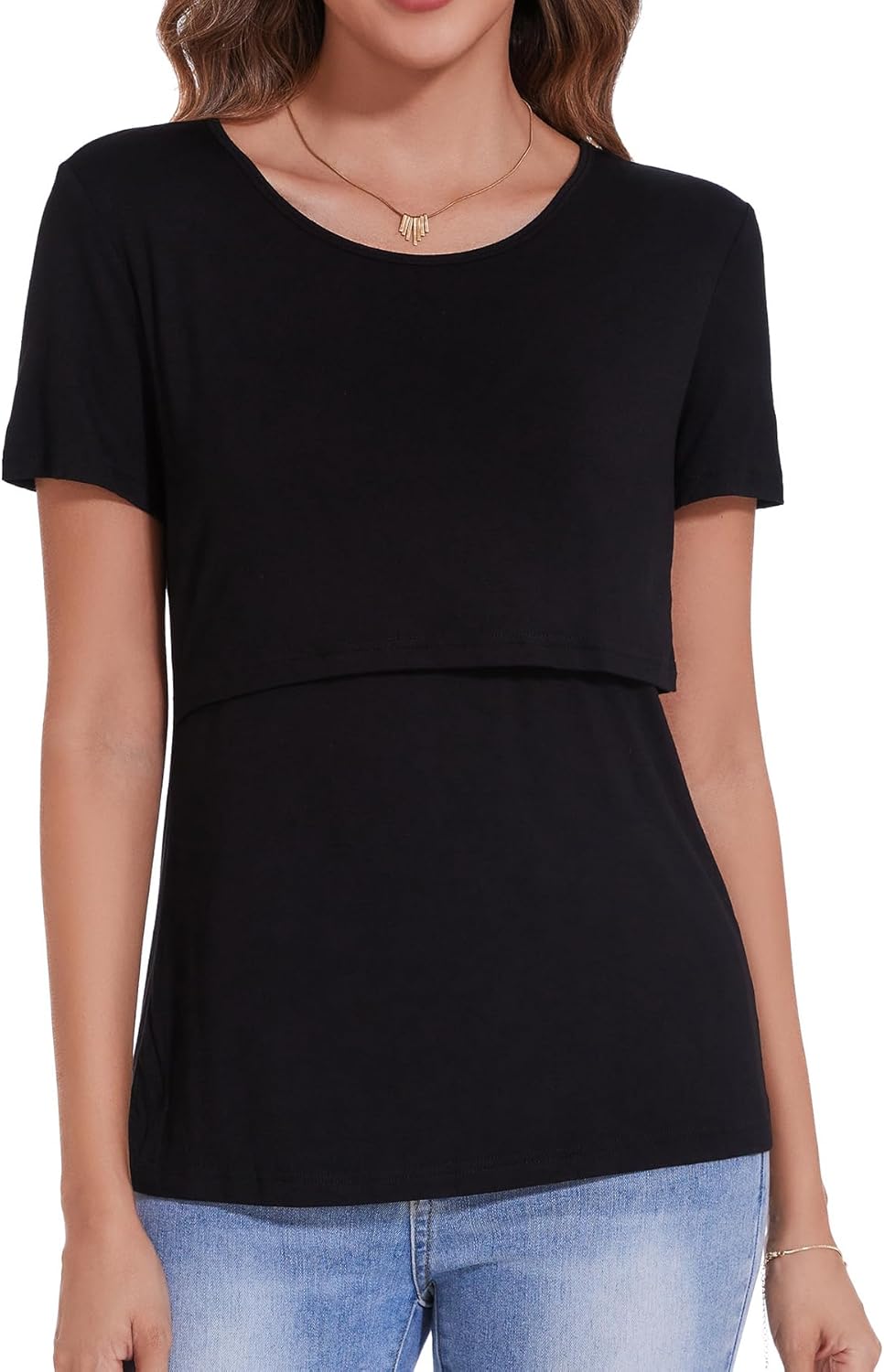 Sosolism Women's Nursing Tops Short Sleeve Breastfeeding Shirt Summer Maternity T-shirtSosolism Women's Nursing Tops Short Sleeve Breastfeeding Shirt Summer Maternity T-shirt