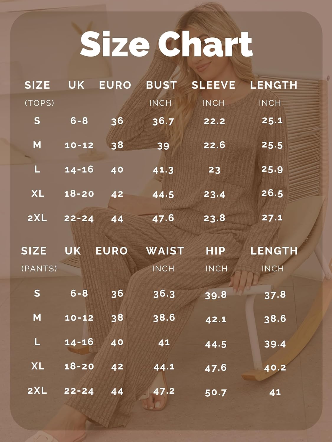 SotRong Ribbed Lounge Wear Sets for Women Uk Casual Two Piece Outfits Winter Autumn Warm Cozy Matching Pajamas Set Loose Baggy Leisure Suits Soft Homewear Sleepwear Nightwear S-2XL