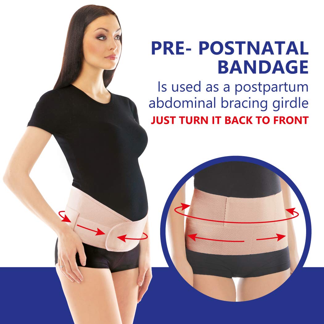 MULTIFUNCTIONAL: Bandage is especially designed to provide support for the prenatal period during 4th-9th months and also for the postnatal rehabilitation period (turn the bandage back to front in order to create necessary abdominal compression if you use it during the postpartum recovering time). Velcro side straps made to ensure customized adjustment.