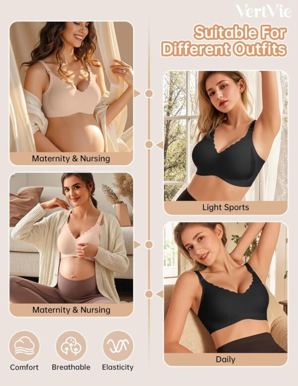 Vertvie Nursing Bras for Breastfeeding Seamless Maternity Bra Comfort Wireless Pregnancy Sleep Bralette with Extra Extender
