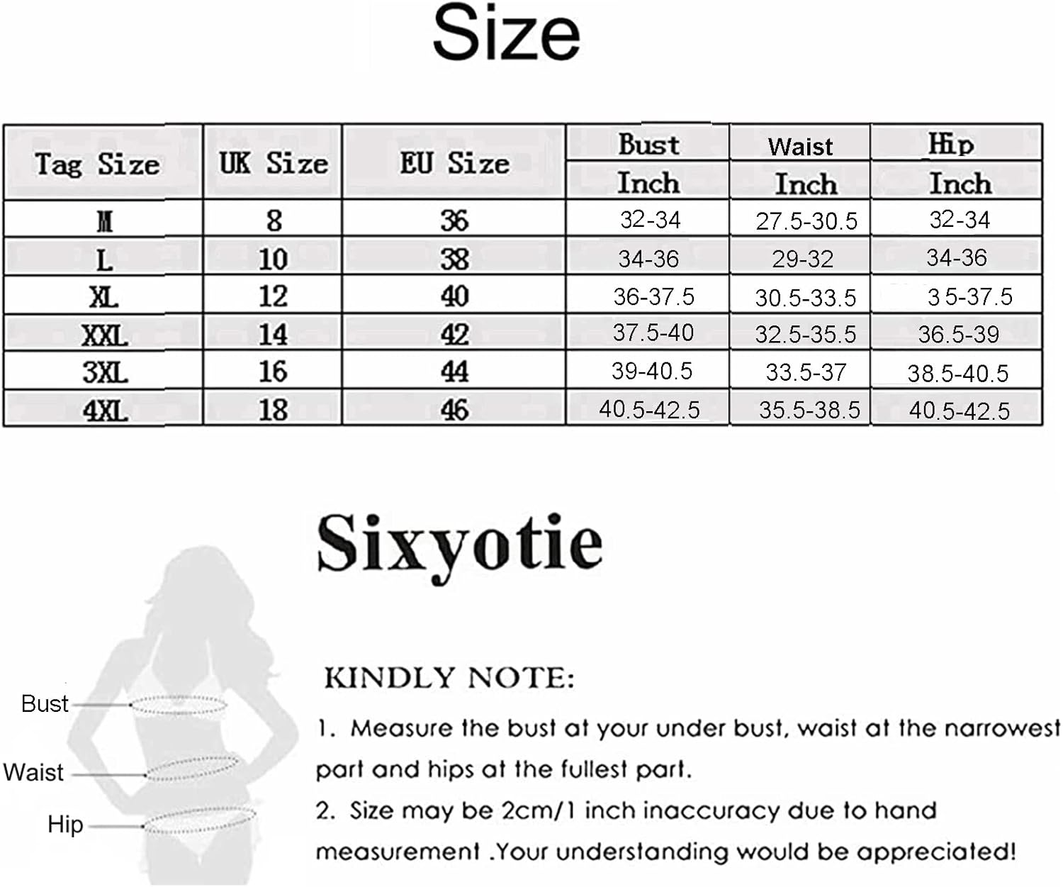 1. Bust 45.6in, Waist 39.7in, Hip 46.8in Thigh 28.7in, suitable for UK Size 4XL
