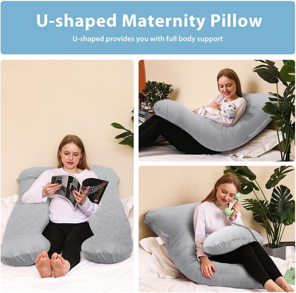 Chilling Home Pregnancy Pillow Cooling, 55 inches Maternity Pillow for Pregnant Women, Comfortable U Shaped Full Body Pillow Pregnancy Pillows for Sleeping, with Washable Cover (Jersey)