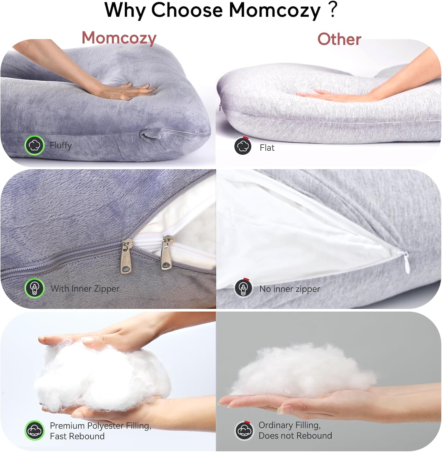 More Longer, More Fluffier Why Choose Momcozy Full Body Pregnancy Pillows?