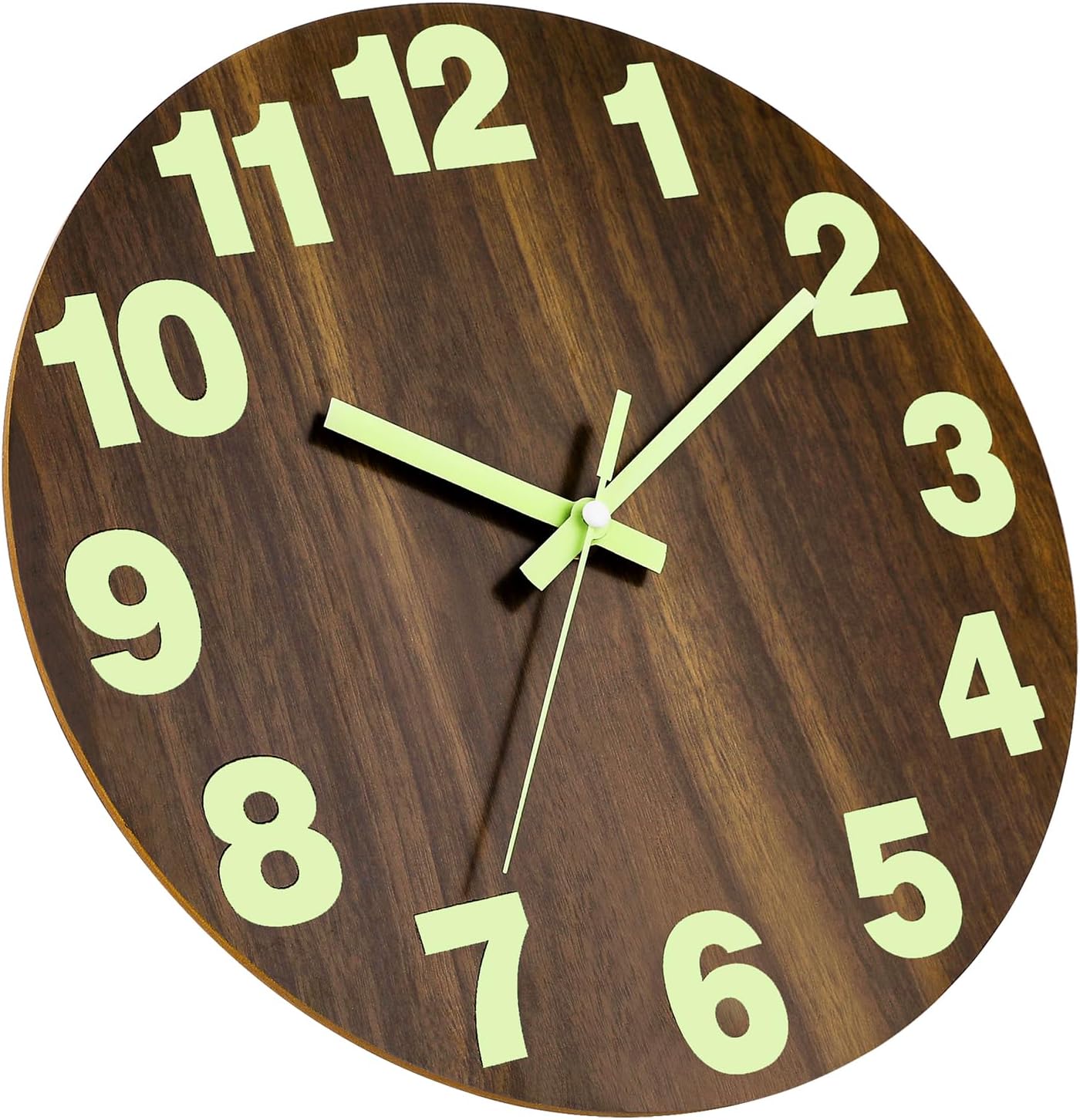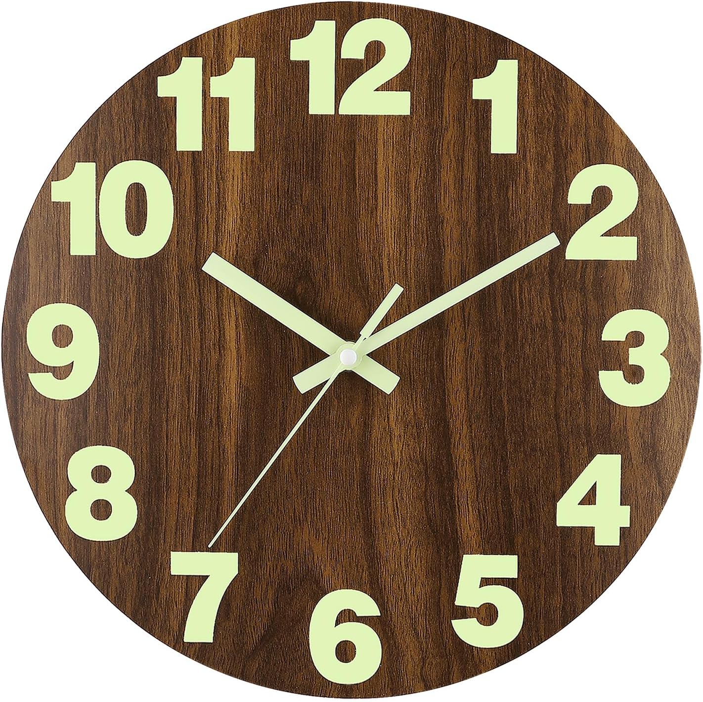 Plumeet Night Light Wall Clock, 12 Inch Wooden Glow in the Dark Clock for Bedroom, Silent Lighted up Wall Clock Luminous Numerals and Hands, Battery Operated for Living Room/Kitchen, Brown