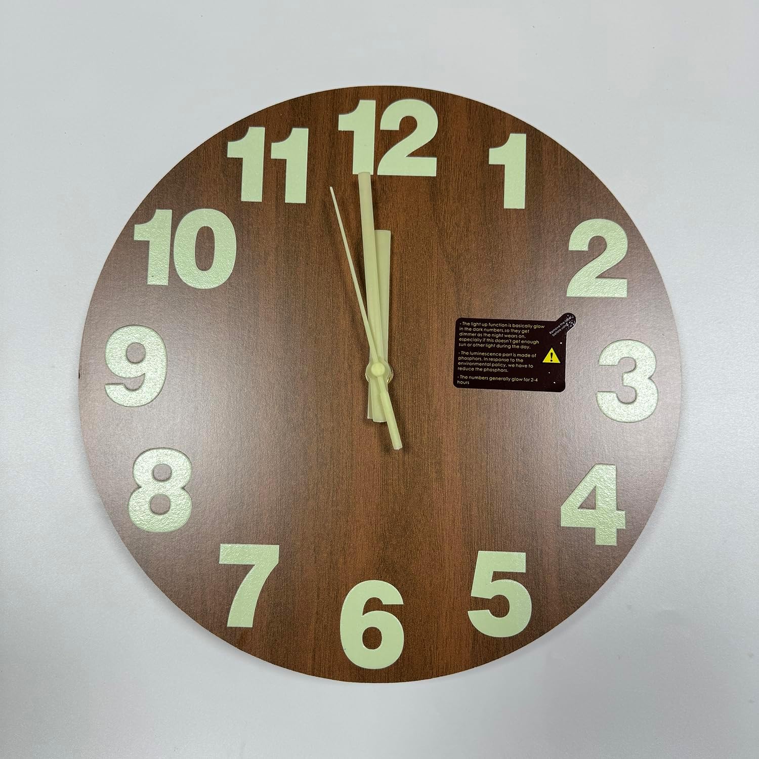 Glowing Function Wall Clock – Luminous function and light up long time, The numbers and clock hands are all coated with phosphor, asks for absorbing enough light energy during the day.(The brightness of noctilucent gradually decreases, and it can’t stay at its brightest all the time)