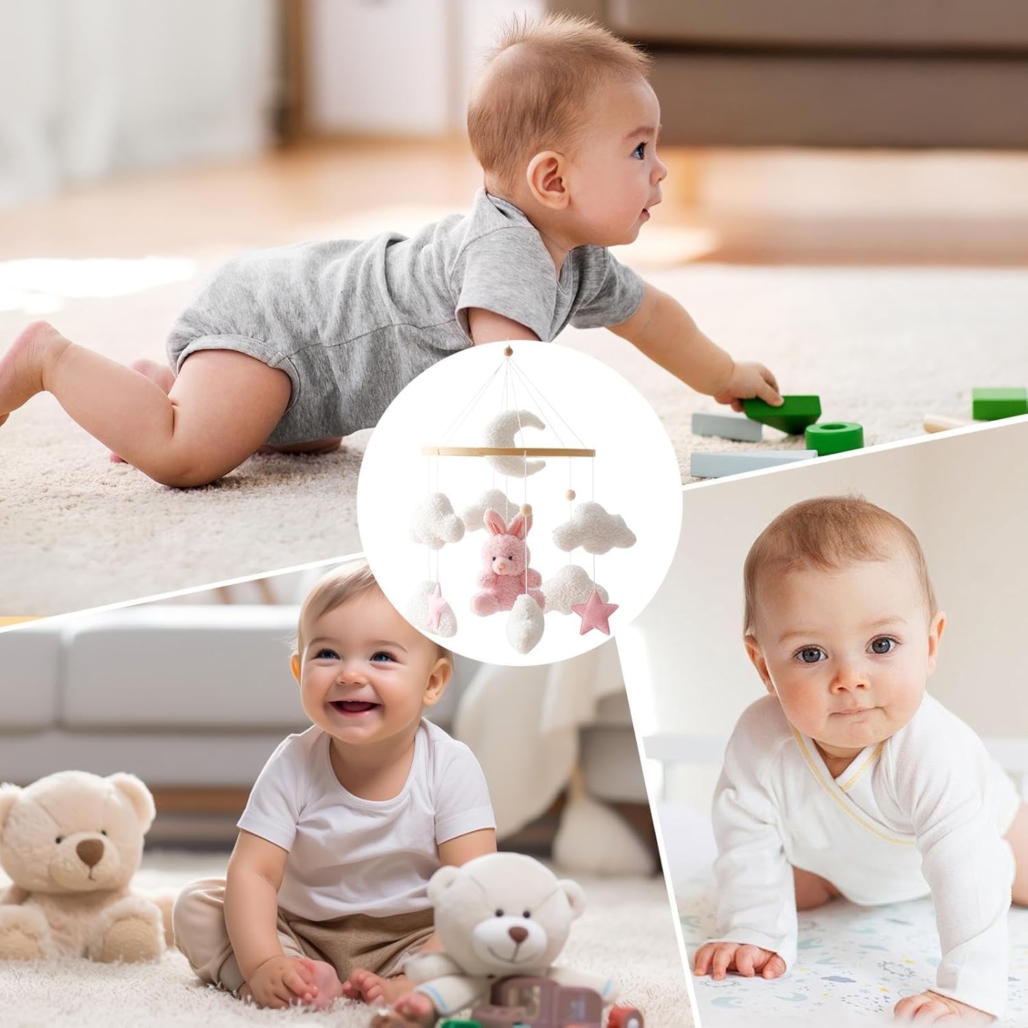 Perfect for any nursery or bedroom : This versatile bunny mobile fits seamlessly into various settings, from cribs and bassinets to kids’ rooms or areas, serving as both a functional toy and a decorative piece