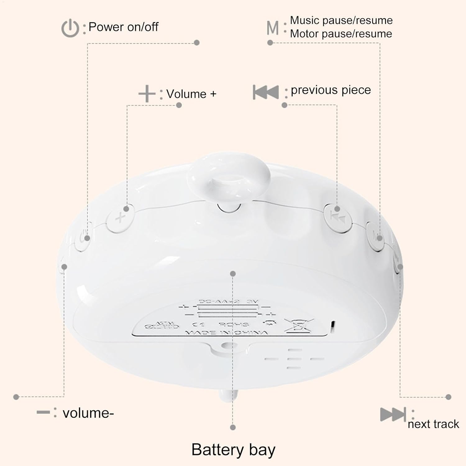 Soothing Outdoors: With a weight of just 90g and a motor size of 130x90x33mm, this kid Mobile Music Box is a must-have travel must-have. Slip it into your diaper bag or backpack for outdoors playtime and relaxation, anytime, anywhere.