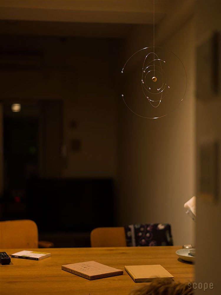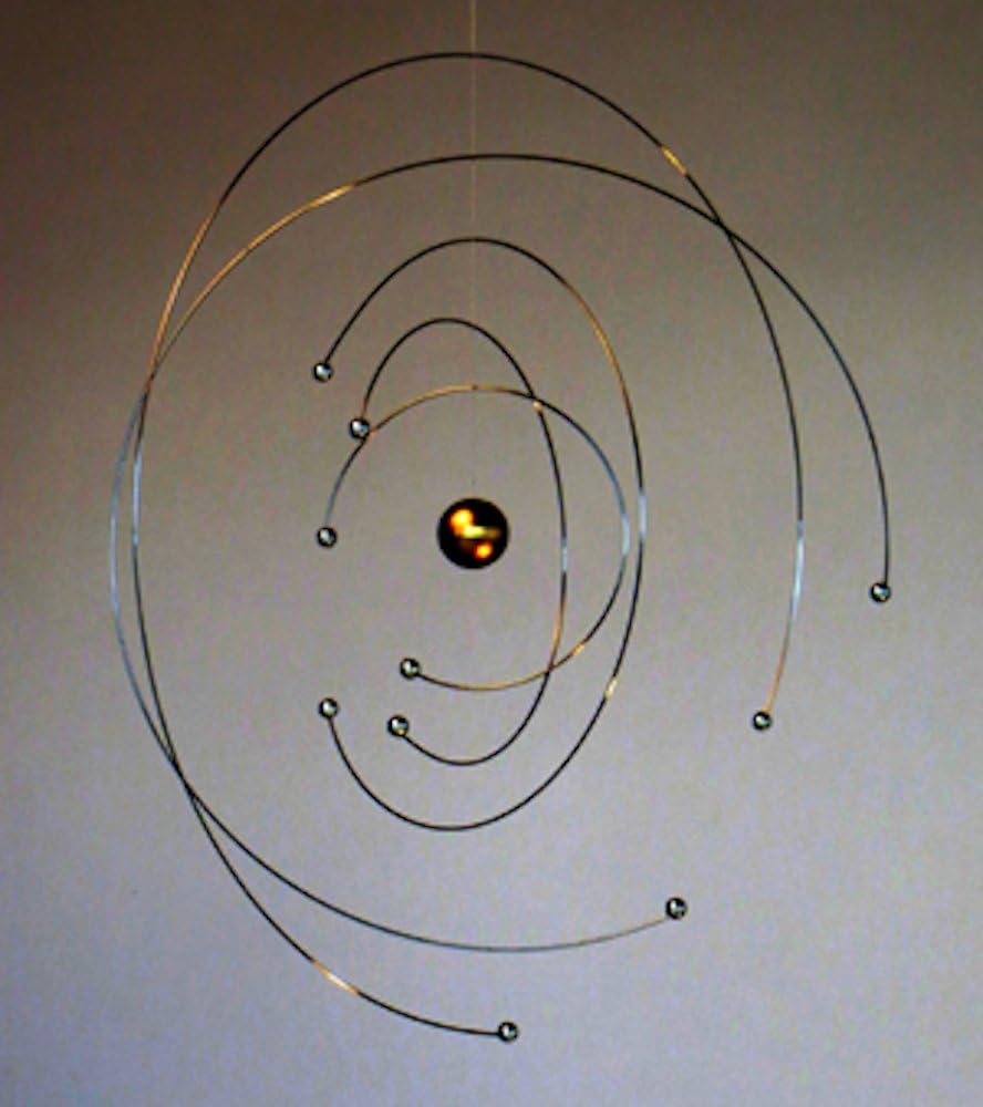 Flensted Mobile Niels Bohr Atom Model is made of steel bracket and paper card.