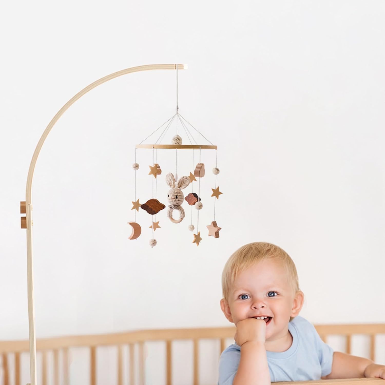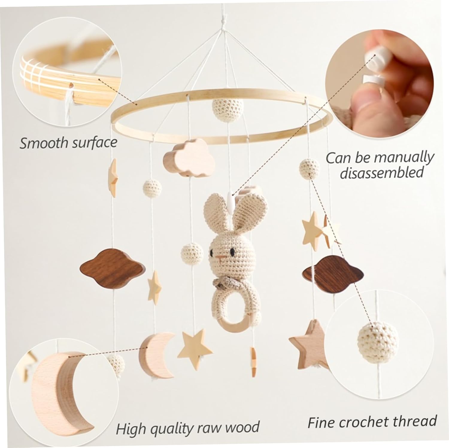 Baby Crib Toys: The gentle swaying motion of the cot mobile captures your baby’s attention and encourages them to focus and track the moving objects. The offset appendages provide an opportunity for your little one to explore and develop depth perception. This not only promotes auditory, motor, and visual stimulation but also has a calming effect, helping your baby settle into the crib or gently wake from sleep.