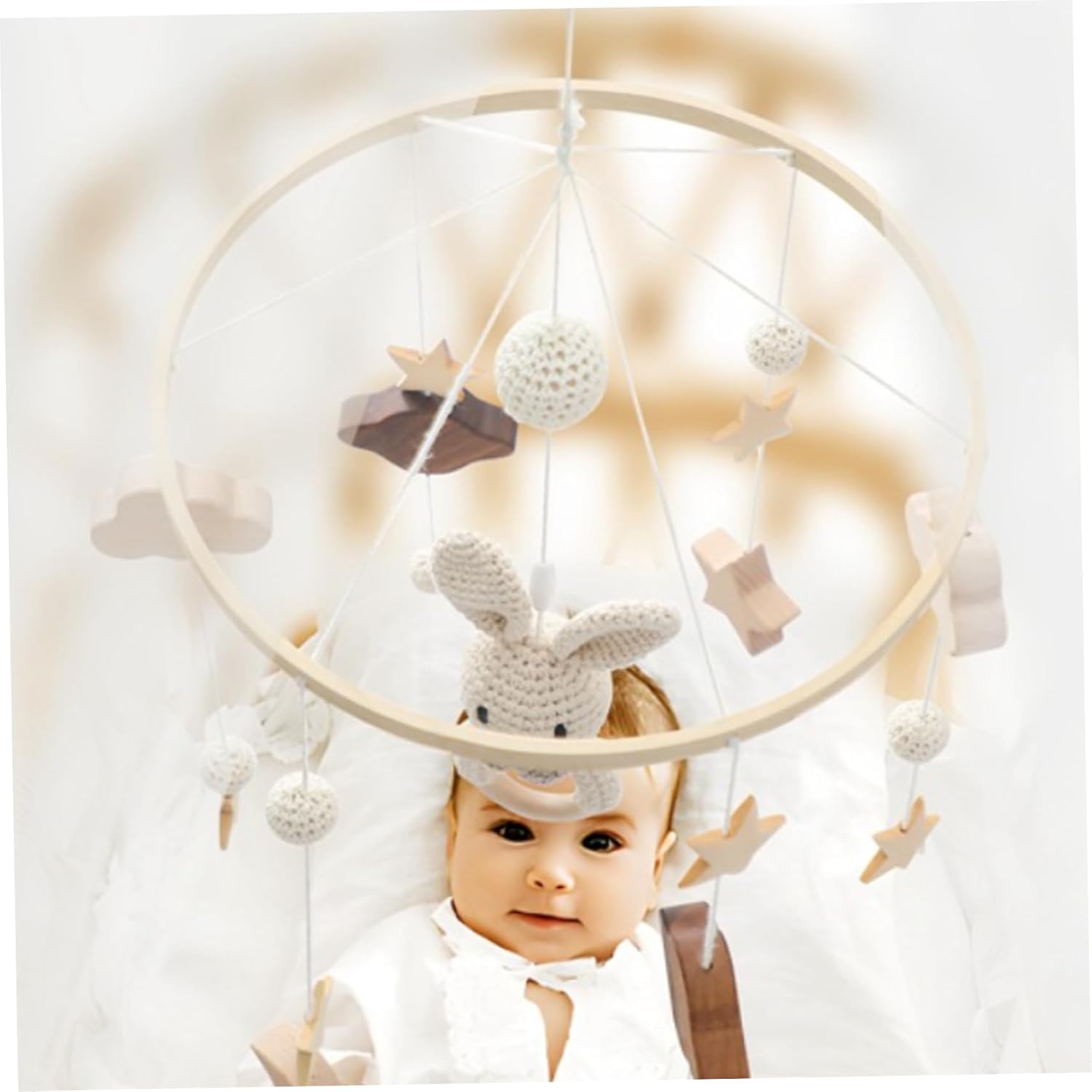 Promise Babe Baby Mobile for Baby Cot,Cute Wooden Star Clouds Baby Mobiles Felt Cot Mobiles Nursery Wooden Crochet Mobiles Newborn Boy Girl Bed Bell Wind Chimes Hanging Deco Nursery Mobiles for Babies