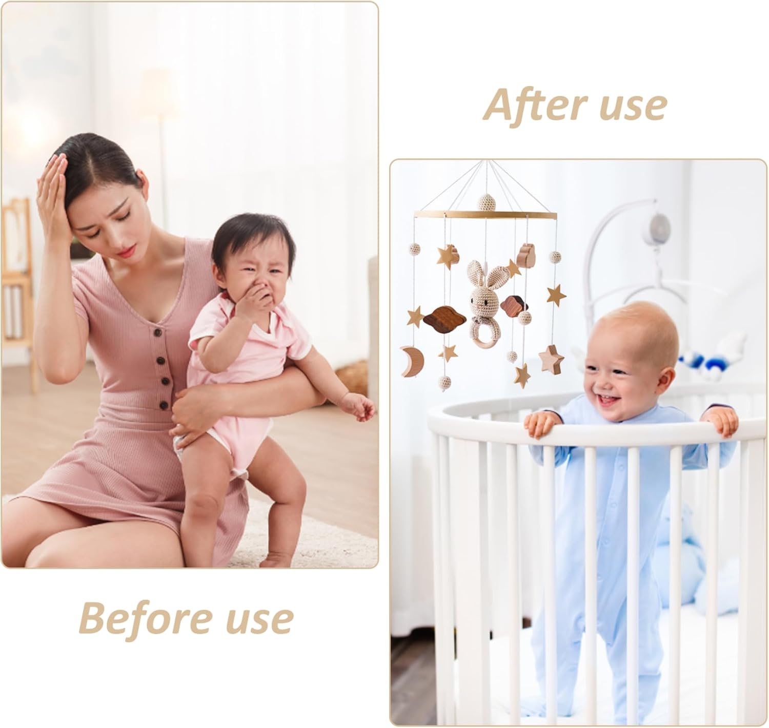 Easy to Install: The Baby Mobile Baby Crib Mobile is not only visually appealing but also provides sensory stimulation. As the wind chimes gently sway, they produce a soothing sound that helps lull your baby to sleep. Its timeless design make a calming and enchanting environment, promoting your baby’s development and bringing joy and serenity to their early years.