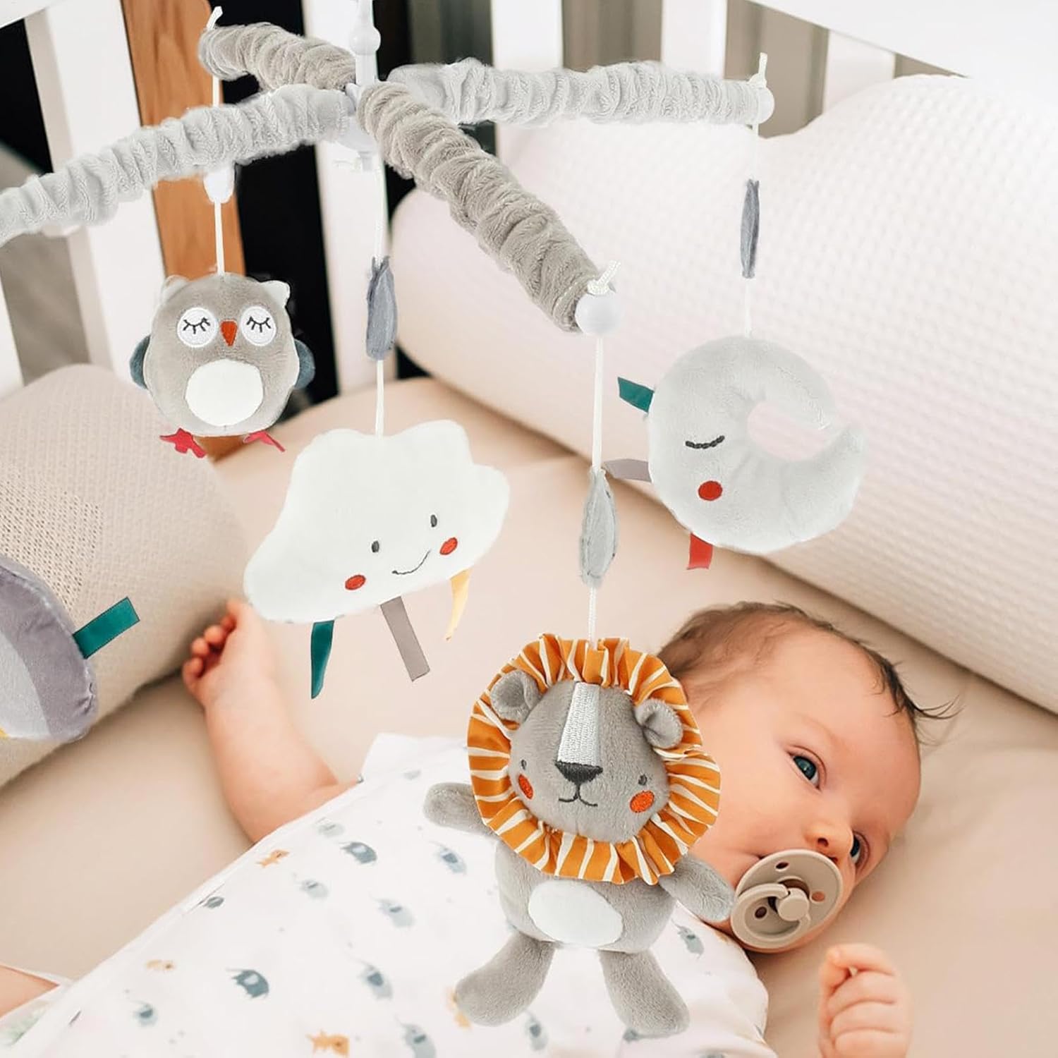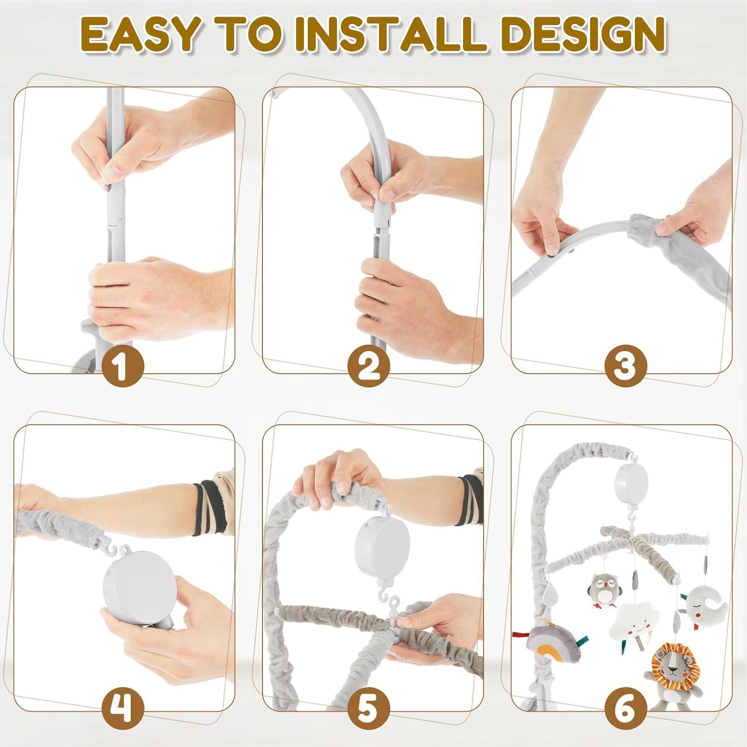 Modernized Installation: Save time and effort by swiftly connecting the notches and seamlessly attaching the music-playing crib mobile to the cradle rails