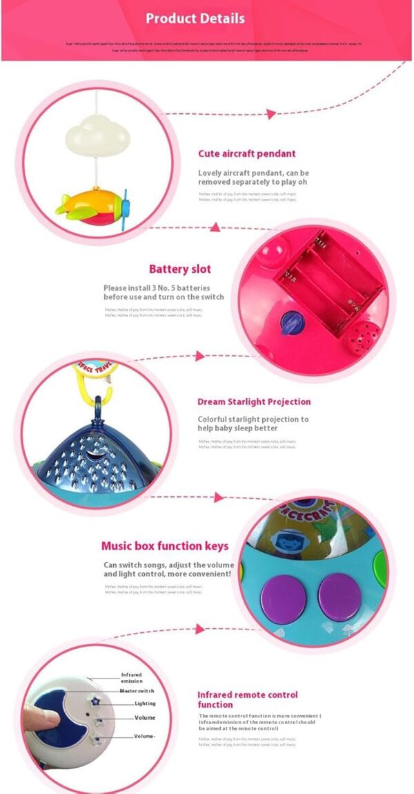 Abundant Functions: Encouraging early growth, this versatile crib mobile provides rich sensory stimulation with its music box, projector, and mobile toy functions
